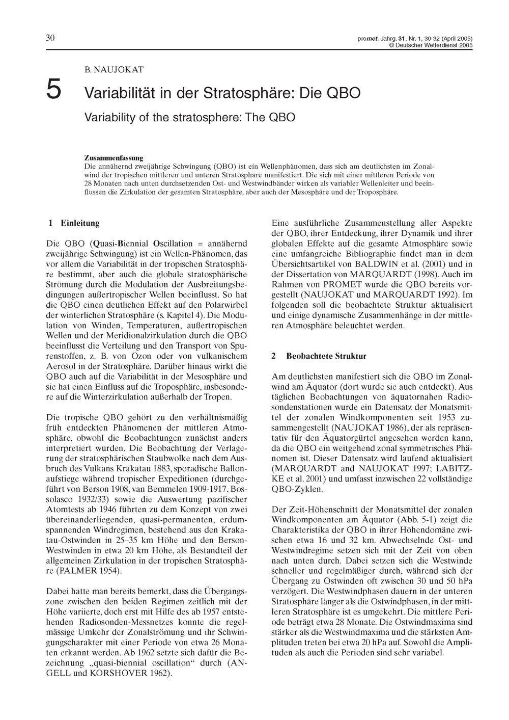 5. B. Naujokat: Variabilität in der Stratosphäre: die QBO