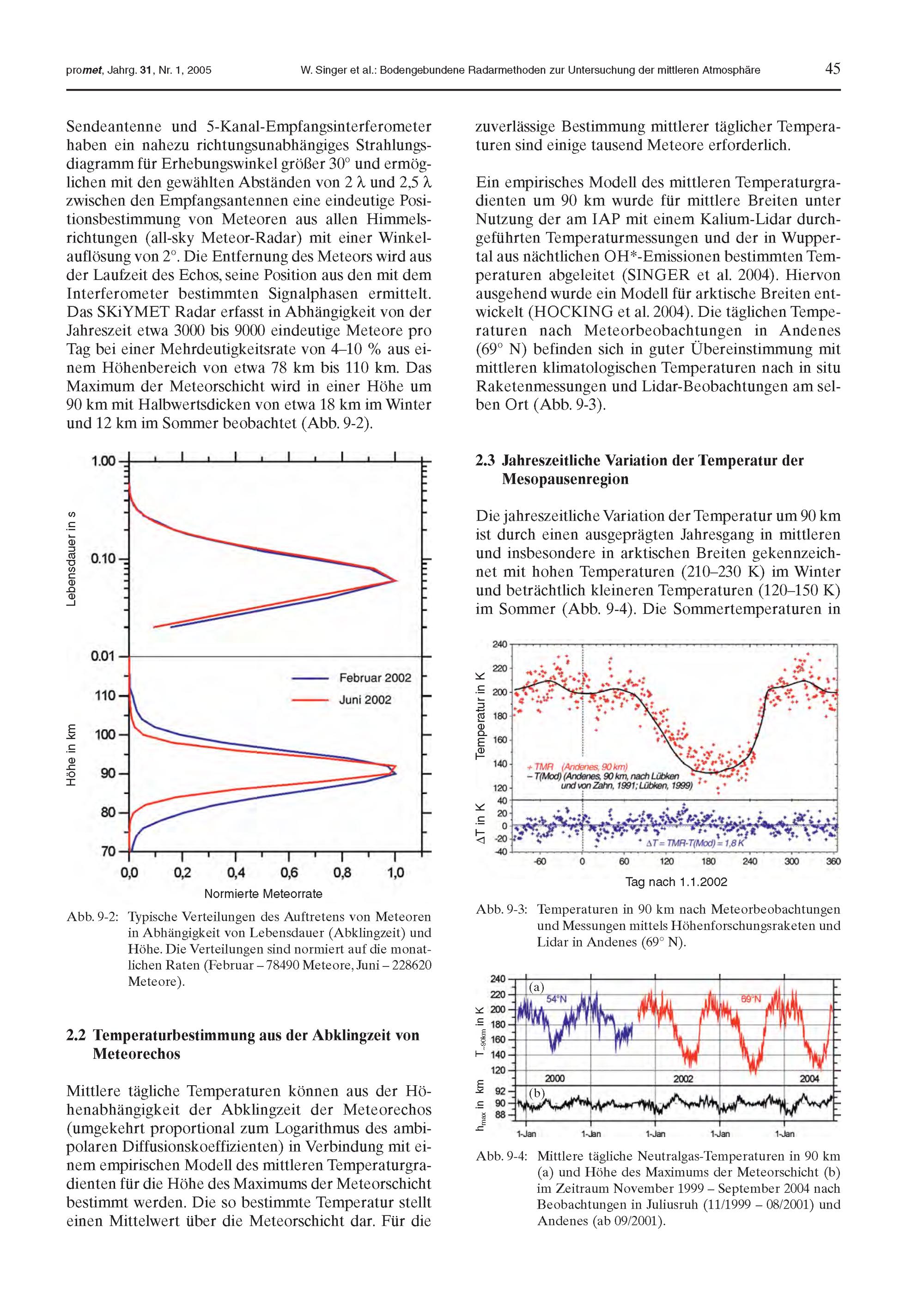 9. W. Singer, R. Latteck, P. Hoffmann, J. Bremer: Bodengebundene Radarmethoden zur Untersuchung der mittleren Atmosphäre