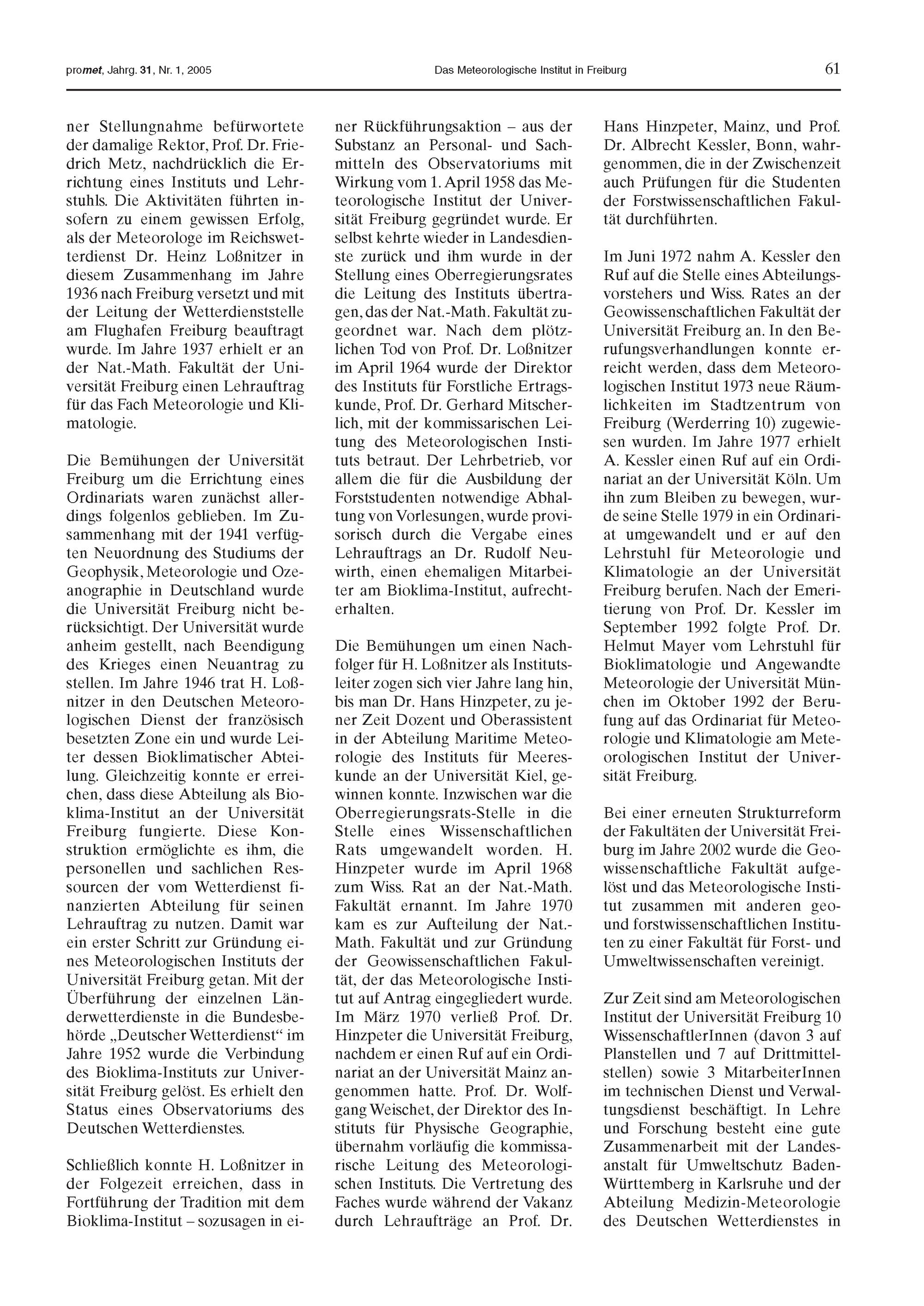 8. F. Hase, H. Fischer: Satellitengestützte Fernerkundung atmosphärischer Spurenstoffe