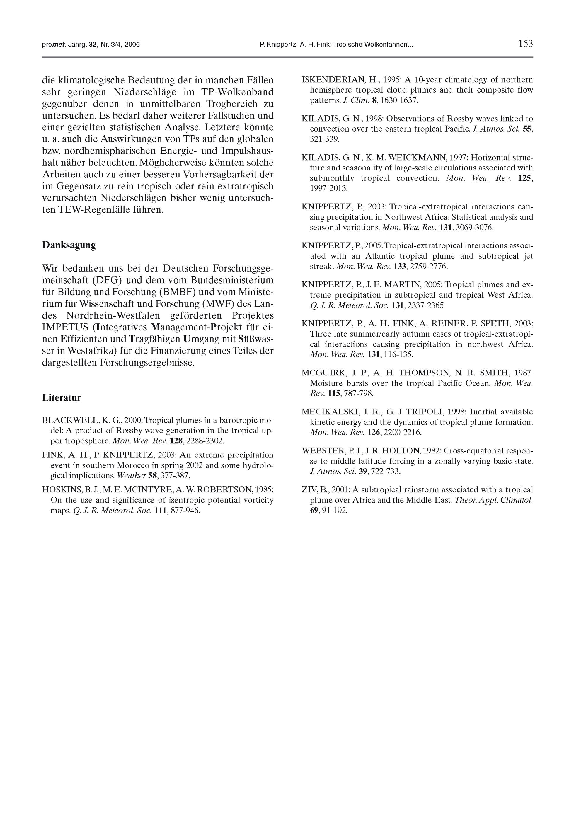 5. P. Knippertz, A. H. Fink: Tropische Wolkenfahnen: Ein sichtbares Zeichen von tropisch-extratropischen...