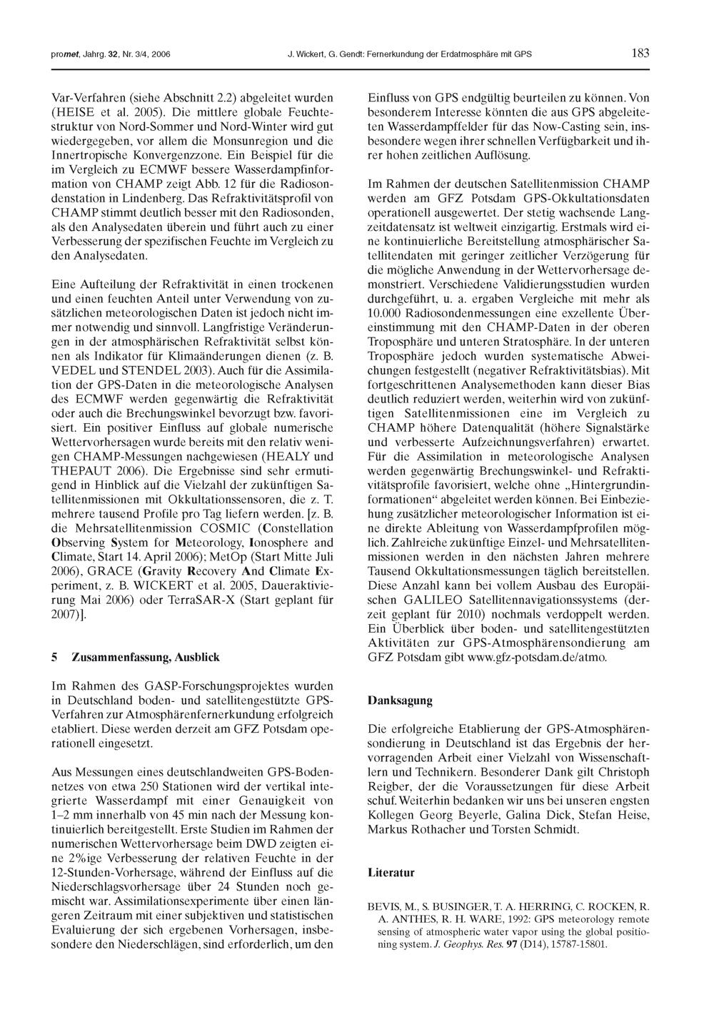 J. Wickert, G. Gendt: Fernerkundung der Erdatmosphäre mit GPS