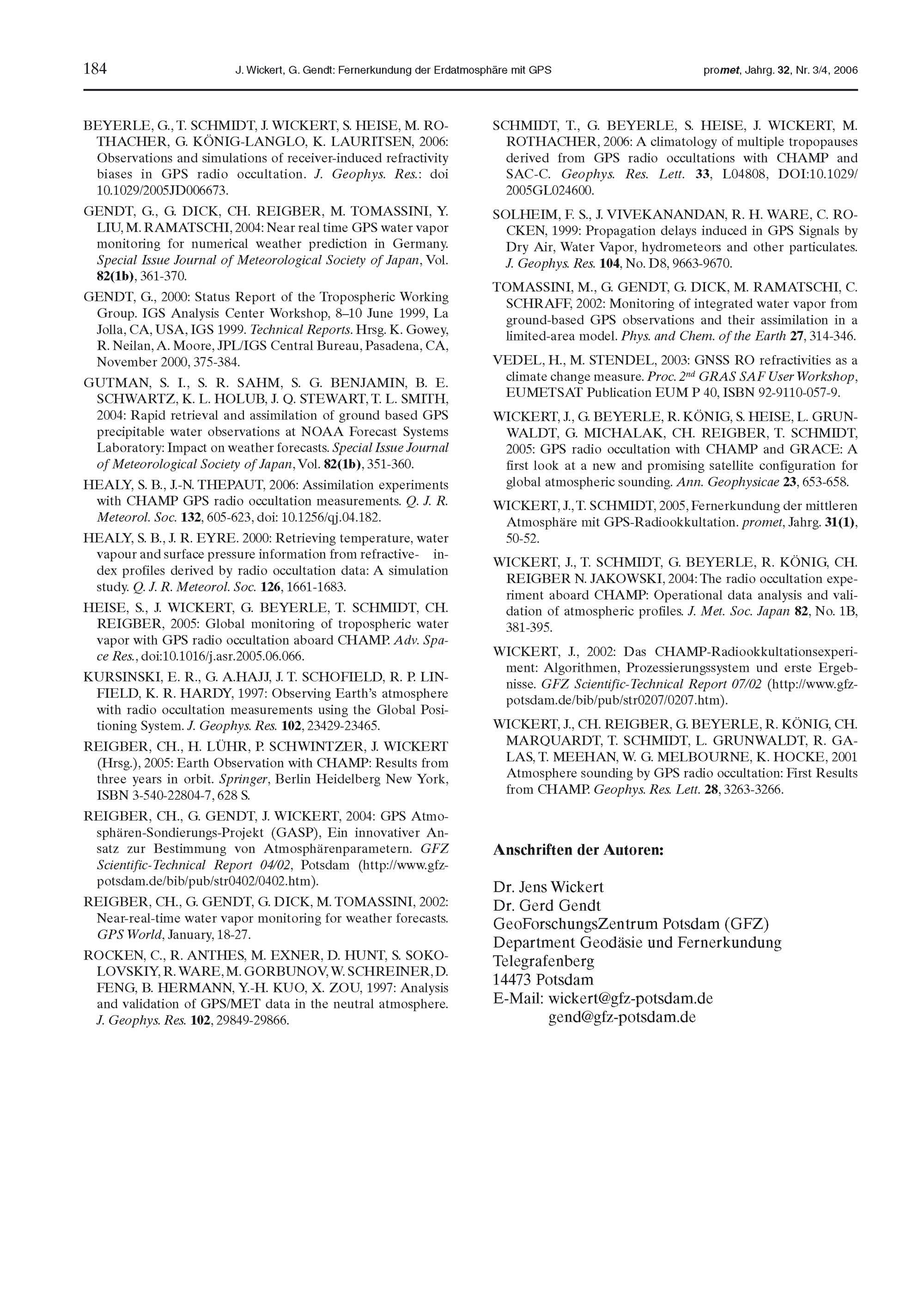 J. Wickert, G. Gendt: Fernerkundung der Erdatmosphäre mit GPS
