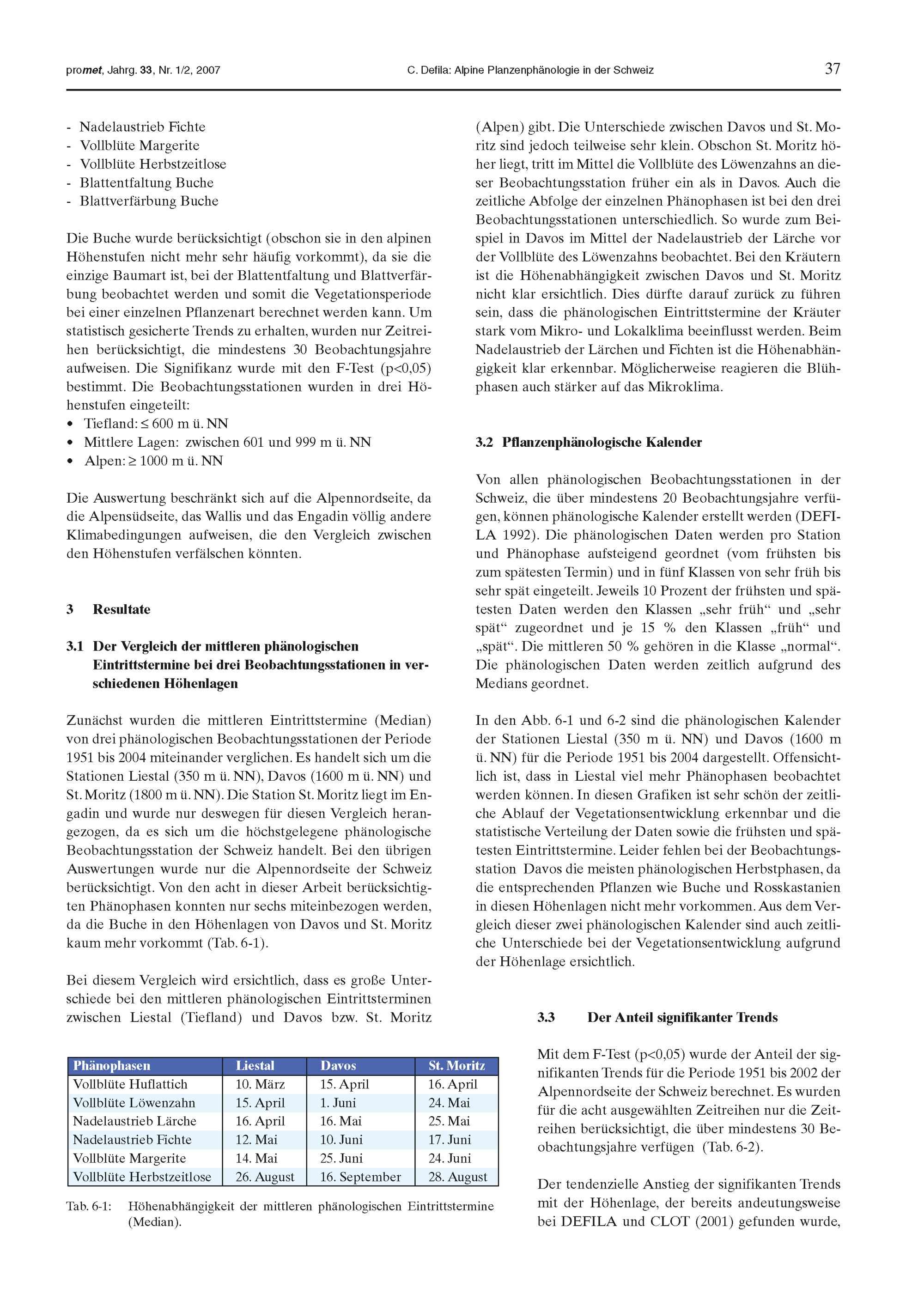 6. C. Defila: Alpine Pflanzenphänologie in der Schweiz