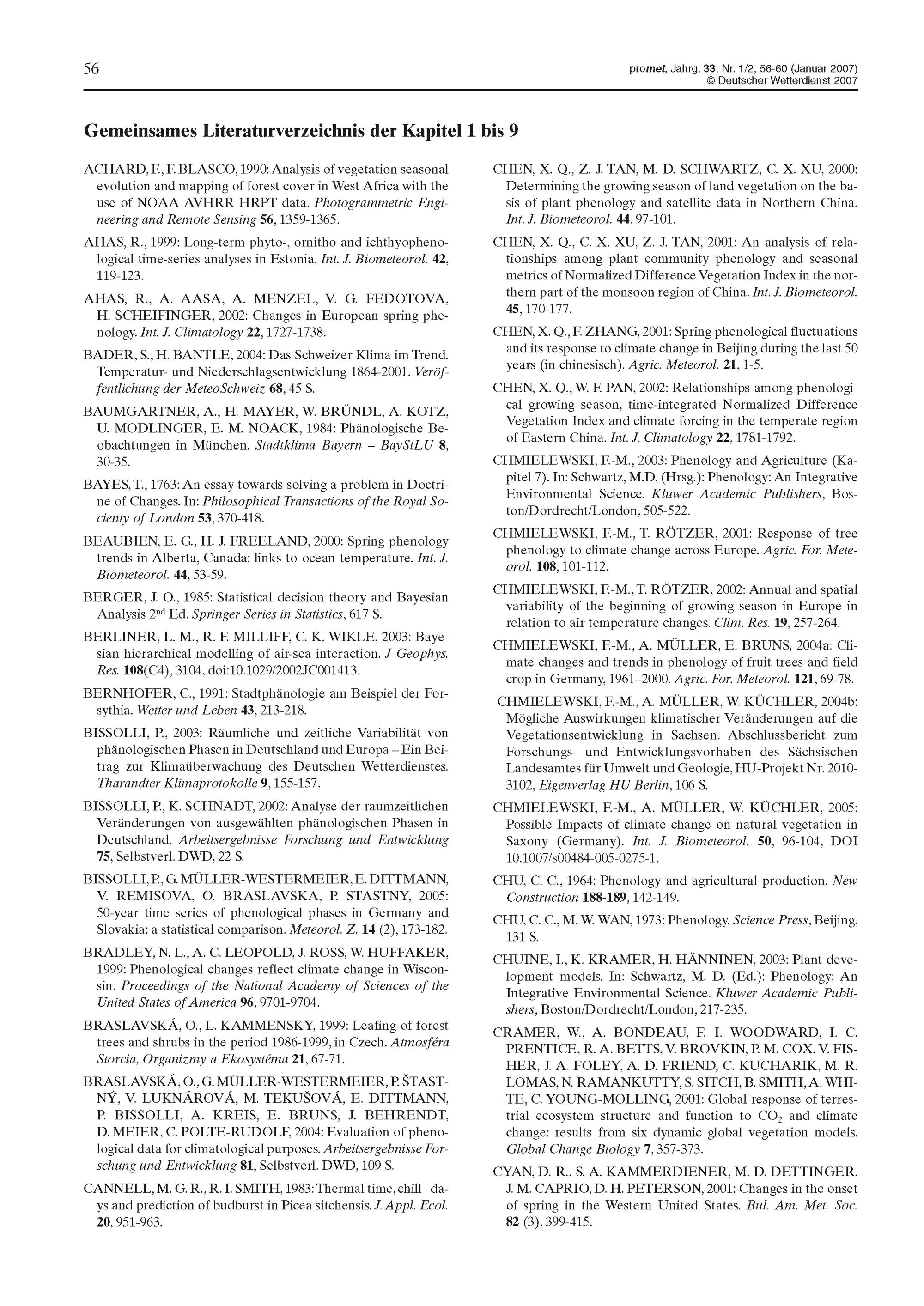 5. F.-M. Chmielewski: Phänologie – ein Indikator zur Beurteilung der Auswirkungen von Klimaänderungen auf die Biosphäre