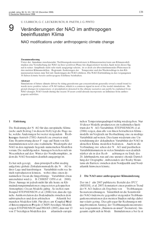 9. U. Ulbrich, G. C. Leckebusch, H. Paeth, J. G. Pinto: Veränderungen der NAO im anthropogen beeinflussten Klima