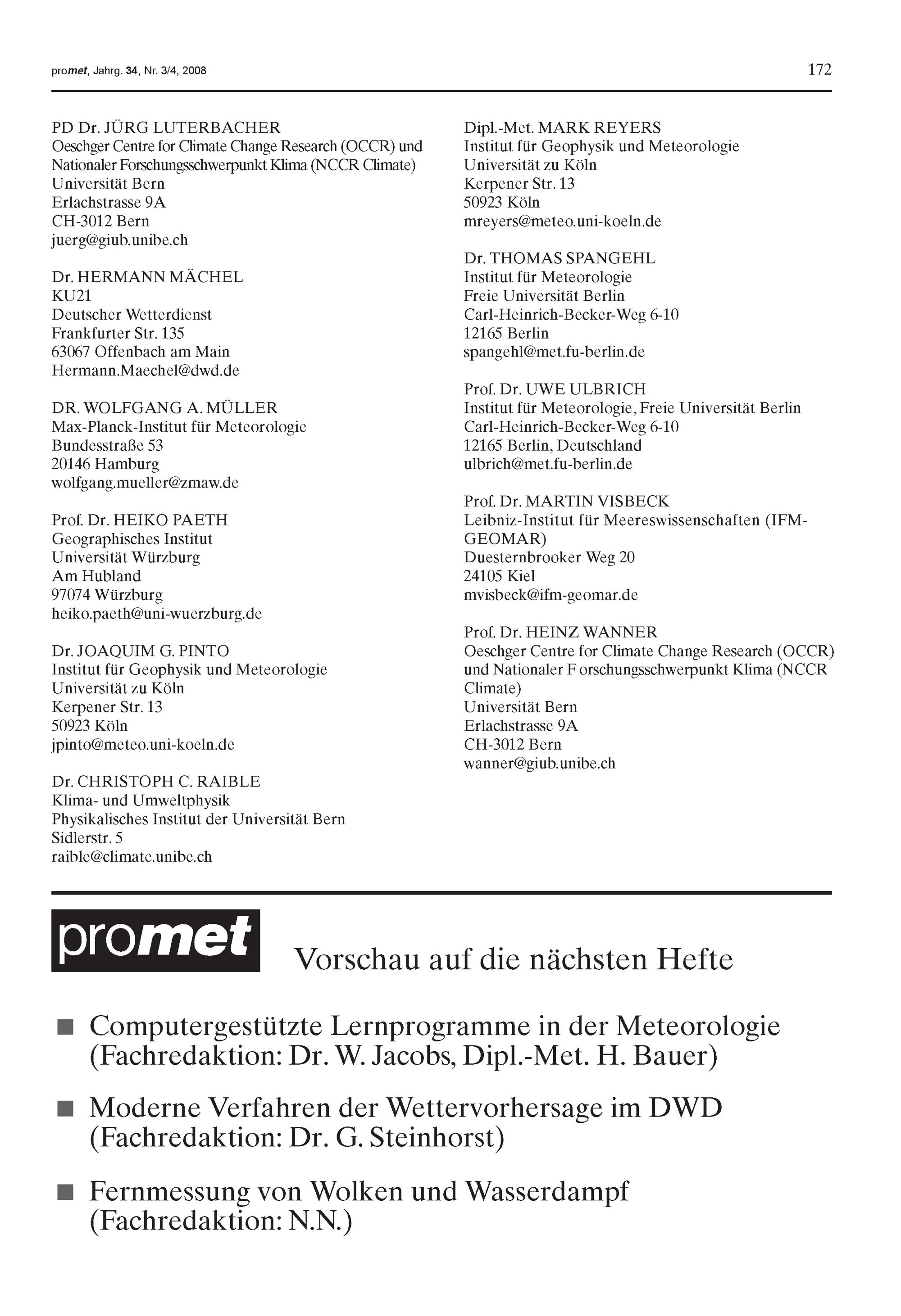 1. J. Luterbacher, H. Wanner, S. Brönnimann: Historische Entwicklung der NAO-Forschung