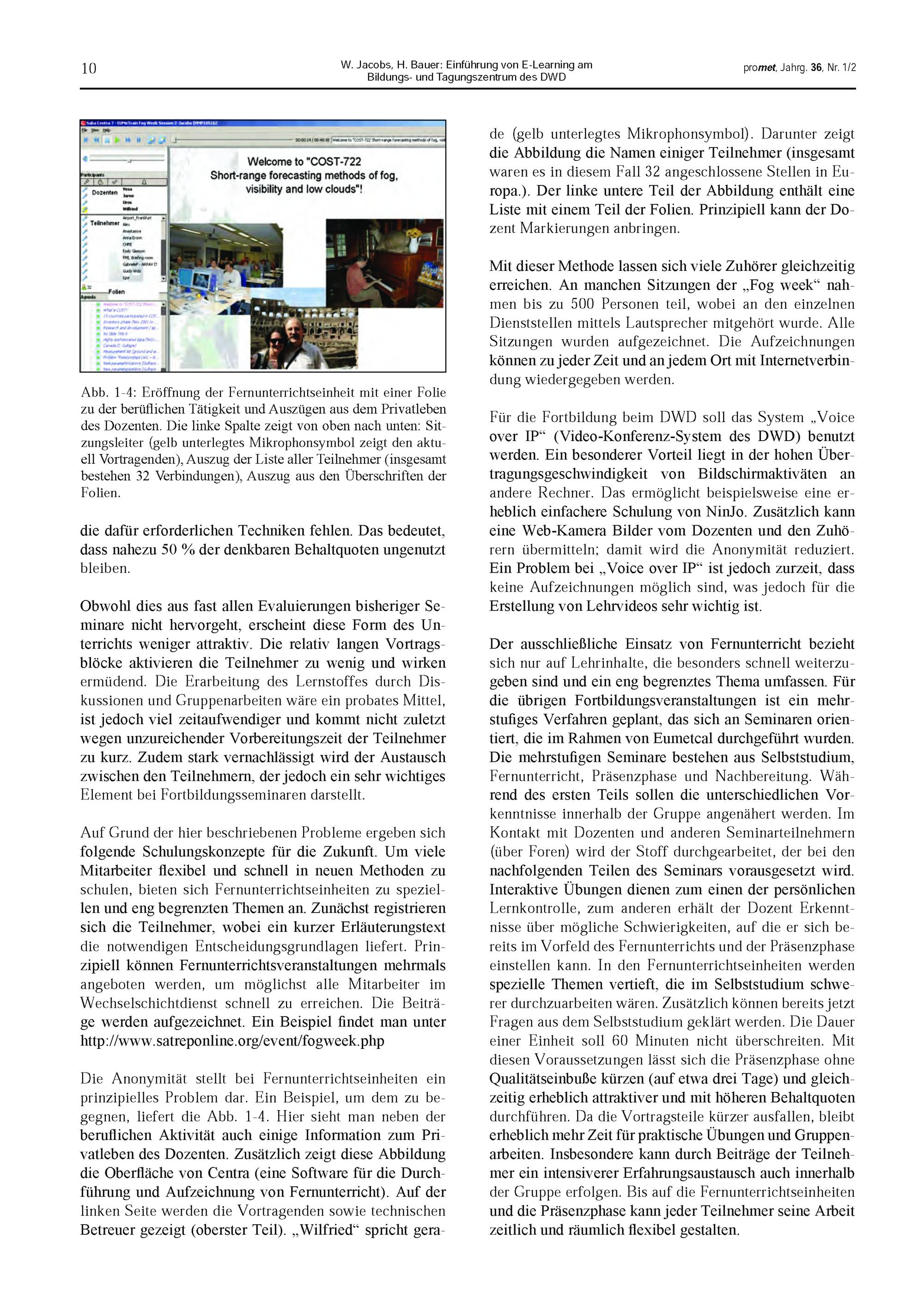 Anwendungen von E-Learning in der Meteorologie / fachliche Redaktion: W. Jacobs, H. Bauer, Langen; fachliche Durchsicht: W. Endlicher, Berlin, B. Ahrens, Frankfurt/M.
