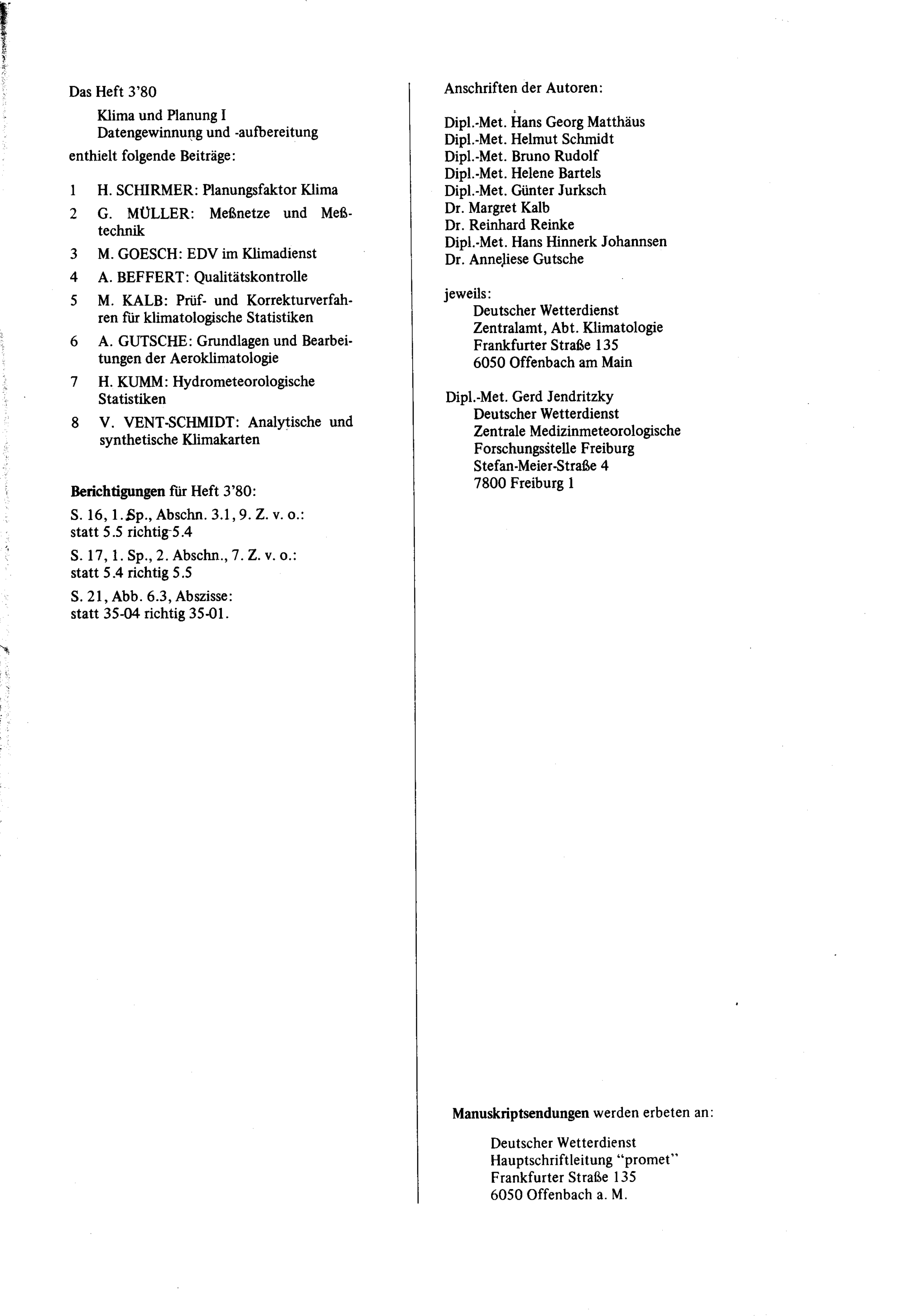 Titel der Beiträge 1 bis 8 (Heft 3'80), Berichtigungen, Anschriften der Autoren