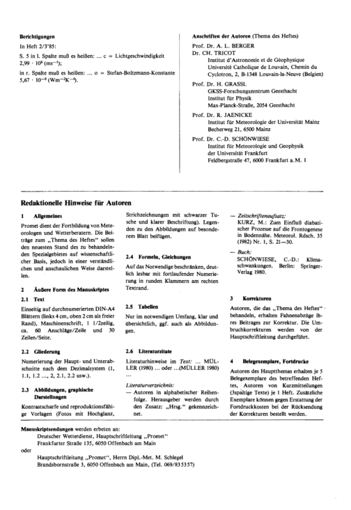 Berichtigungen, Anschriften der Autoren, Redaktionelle Hinweise für Autoren