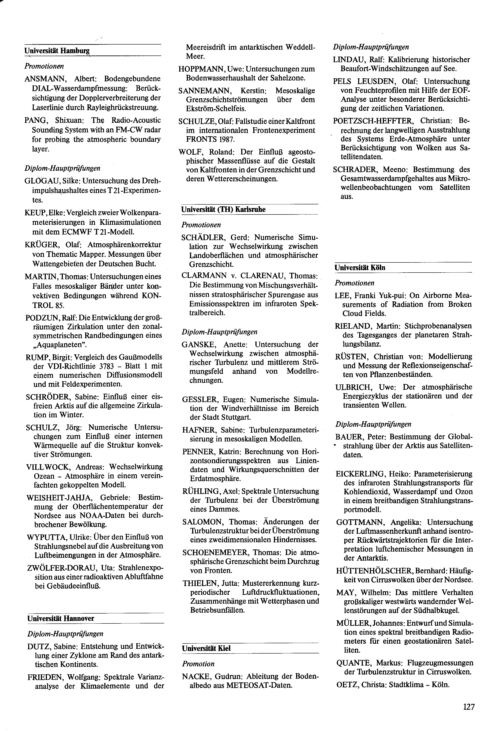 1. D. Lorenz: Fernerkundung in der Meteorologie: Grundlagen, Methoden, Anwendungen, Probleme