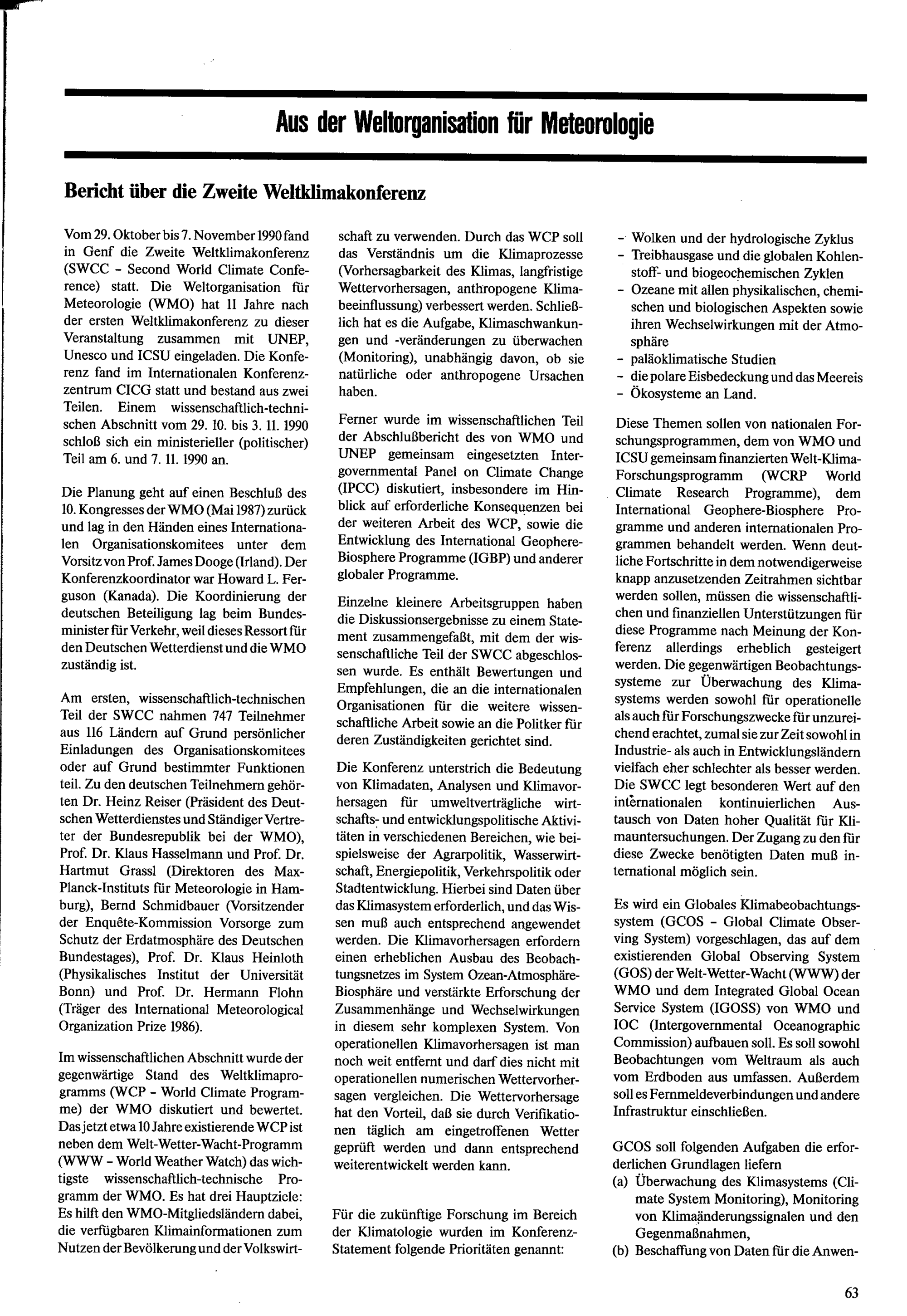 Bericht über die Zweite Weltklimakonferenz