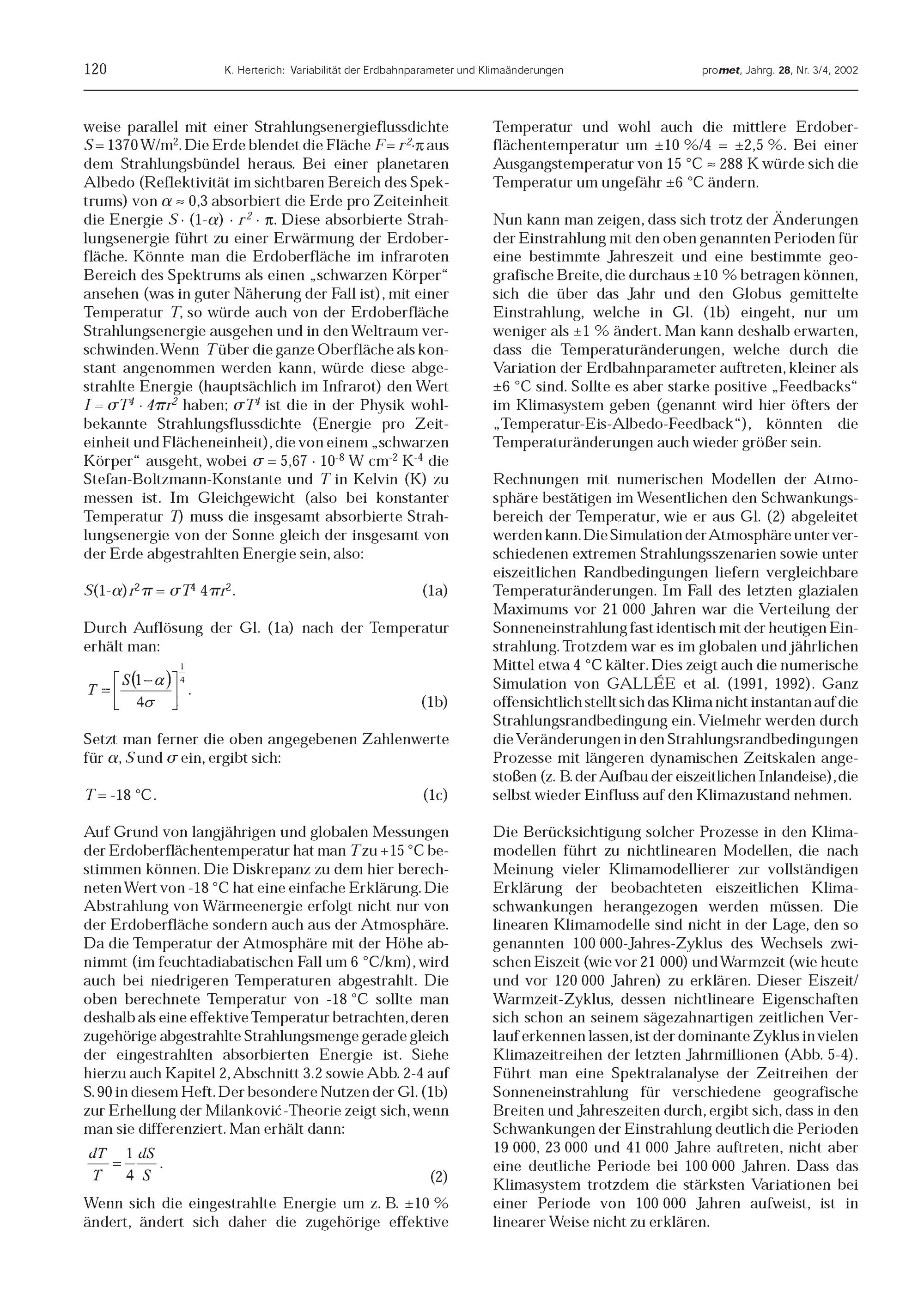 5. K. Herterich: Variabilität der Erdbahnparameter und Klimaänderungen