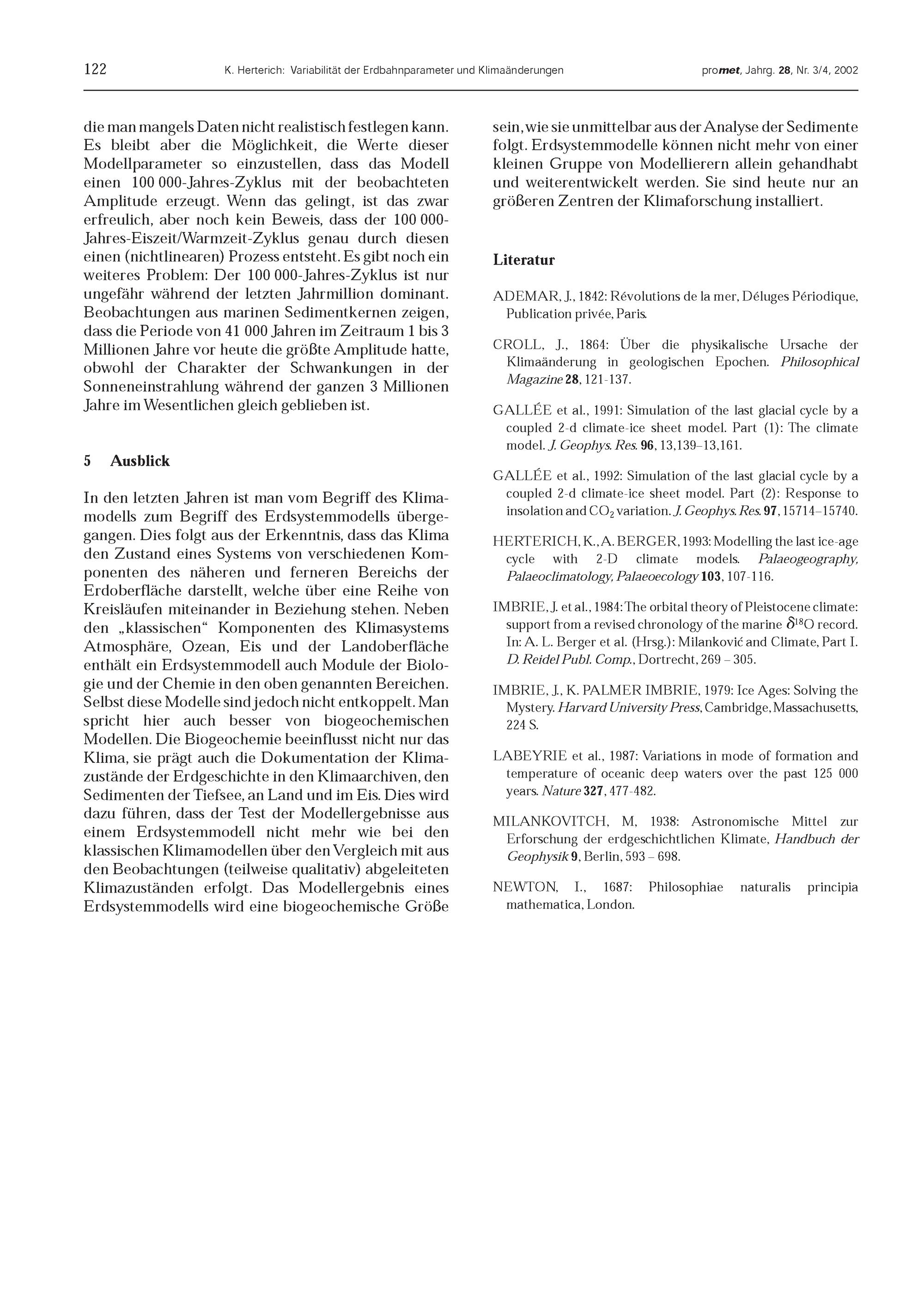 5. K. Herterich: Variabilität der Erdbahnparameter und Klimaänderungen