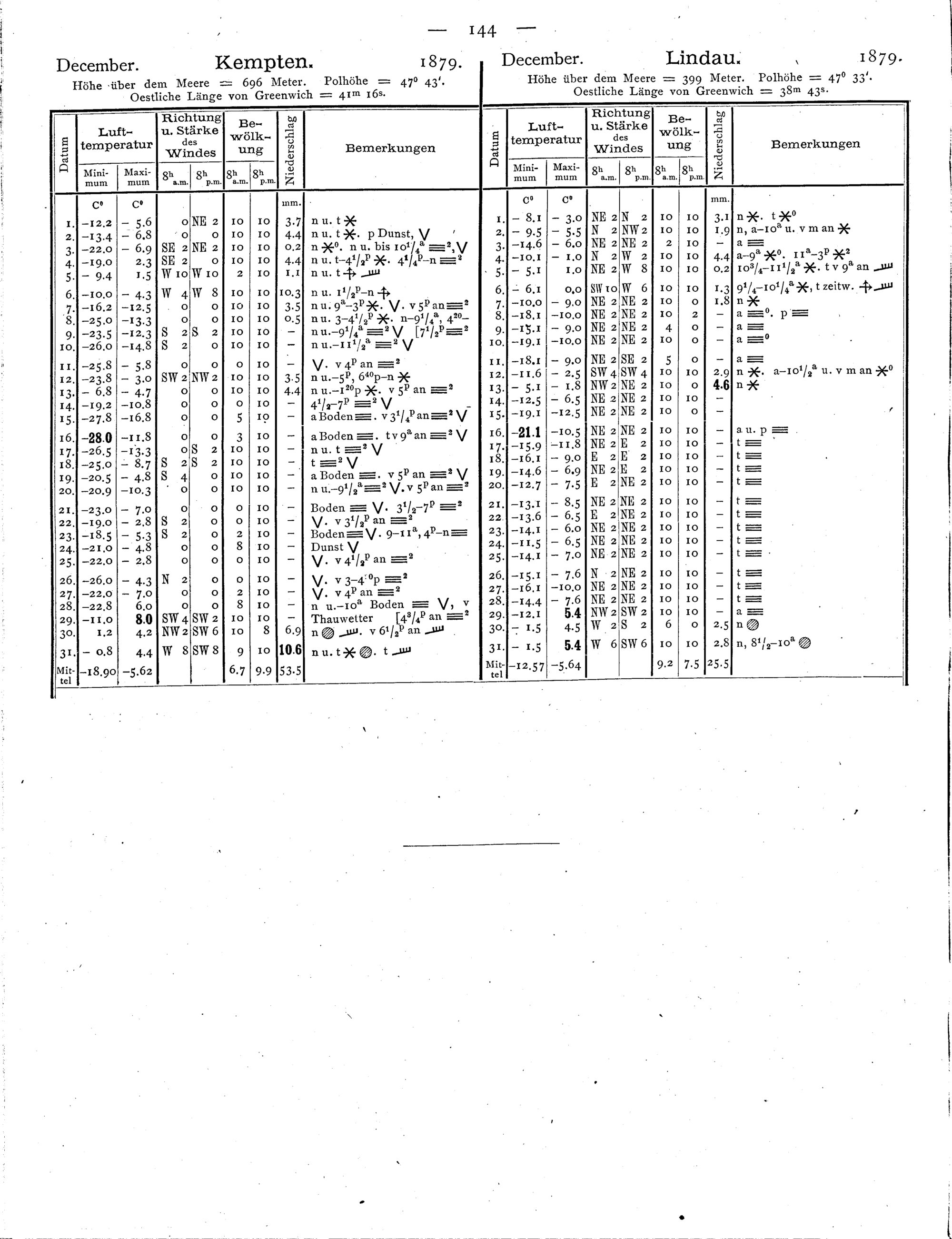 Beobachtungen der meteorologischen Stationen im Königreich Bayern