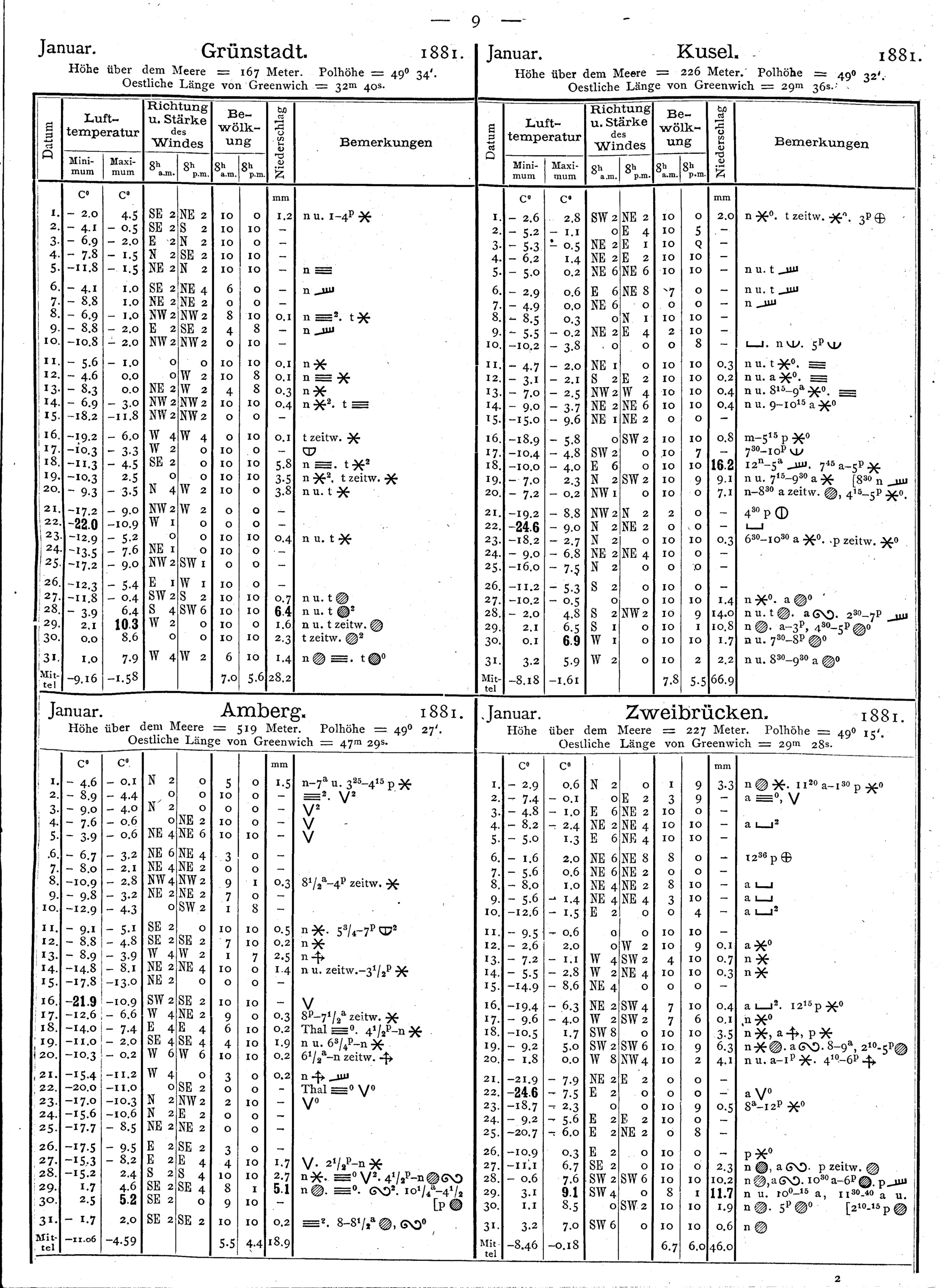 Tägliche Beobachtungen sämmtlicher Stationen