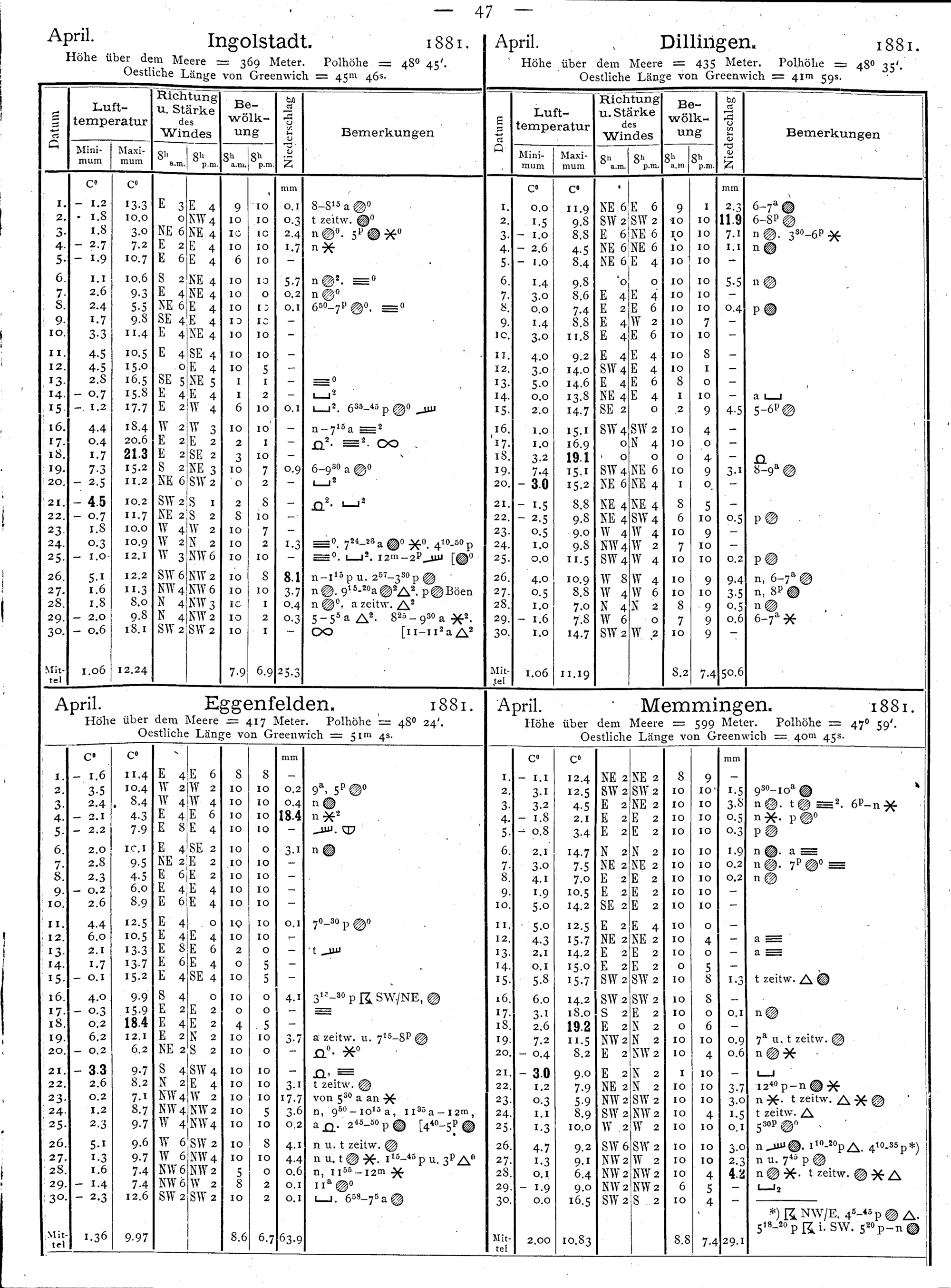 Beobachtungen der meteorologischen Stationen im Königreich Bayern