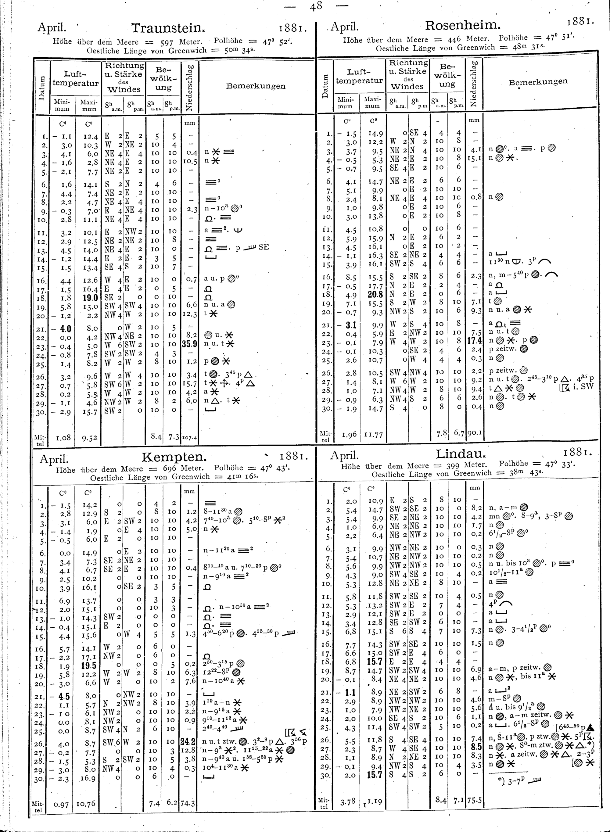 Tägliche Beobachtungen sämmtlicher Stationen
