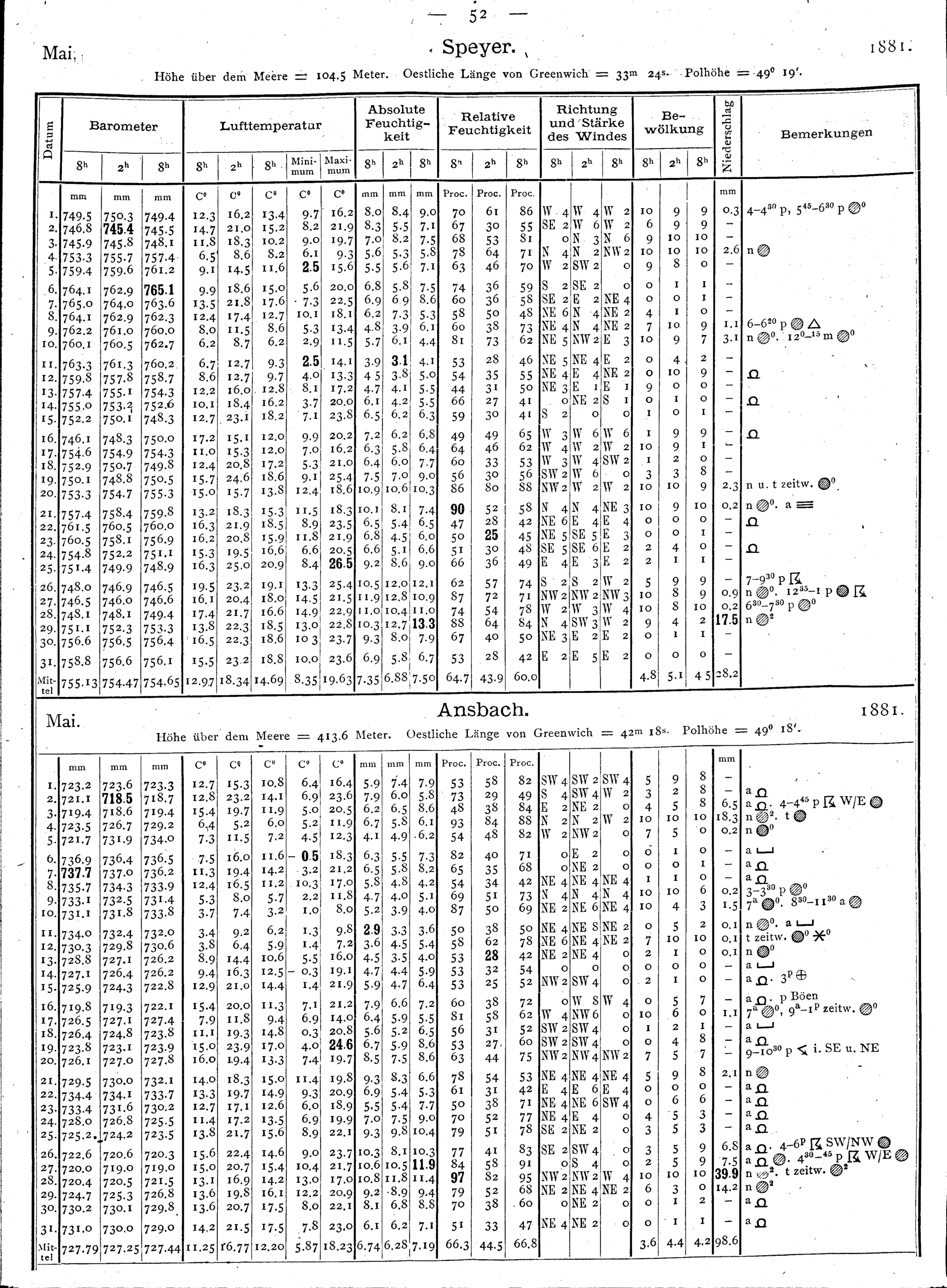 Beobachtungen der meteorologischen Stationen im Königreich Bayern