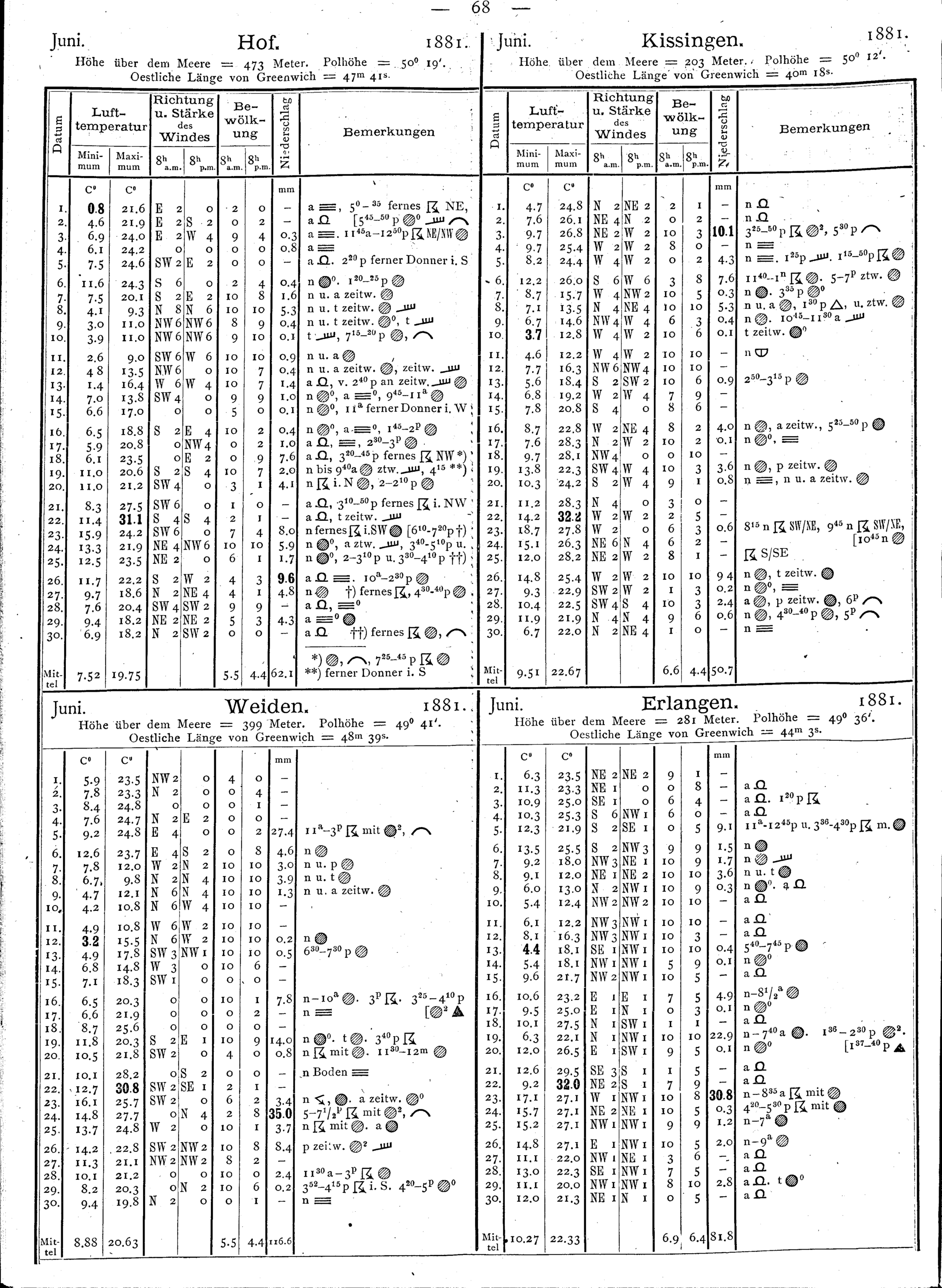 Beobachtungen der meteorologischen Stationen im Königreich Bayern