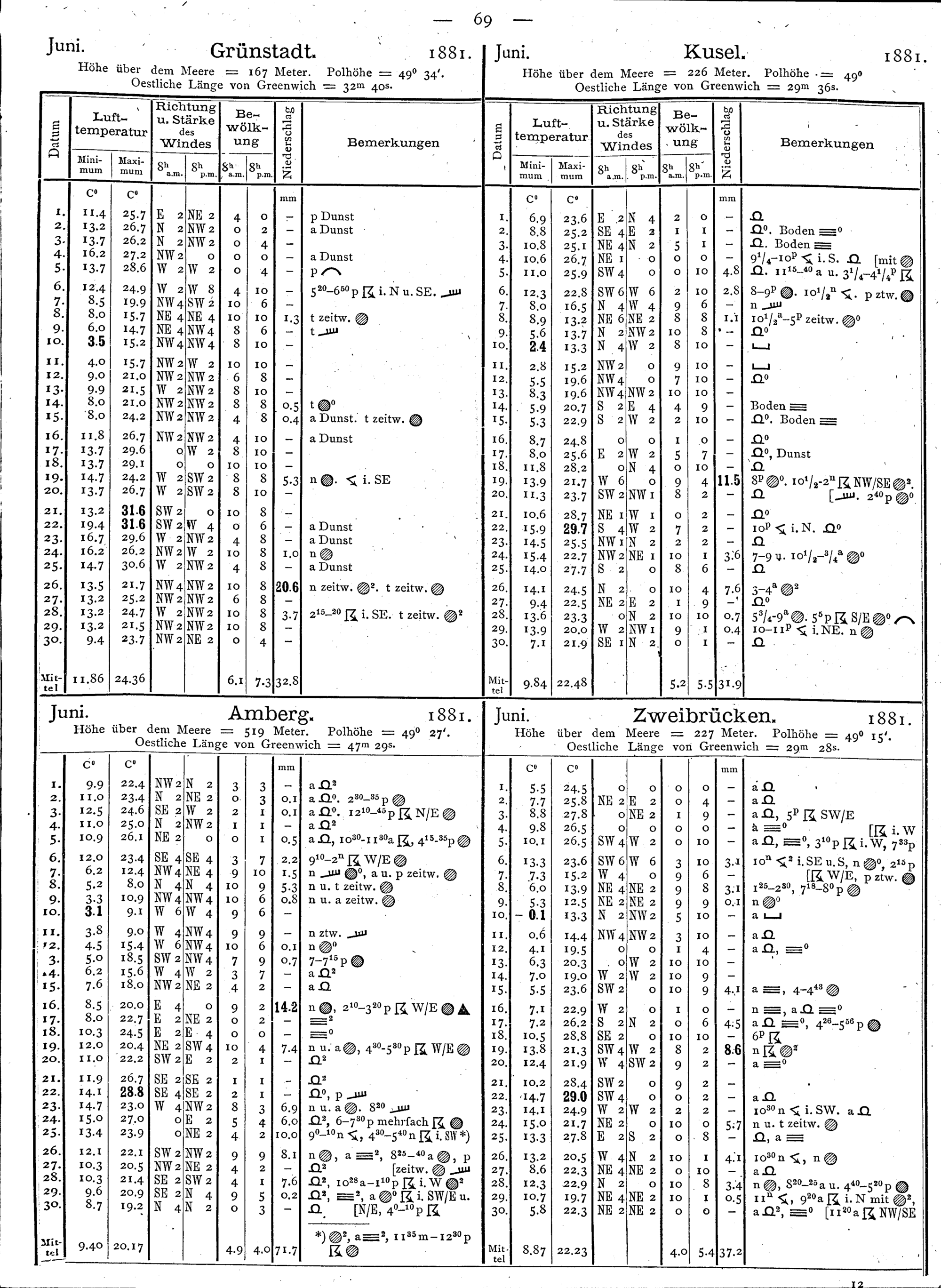 Beobachtungen der meteorologischen Stationen im Königreich Bayern