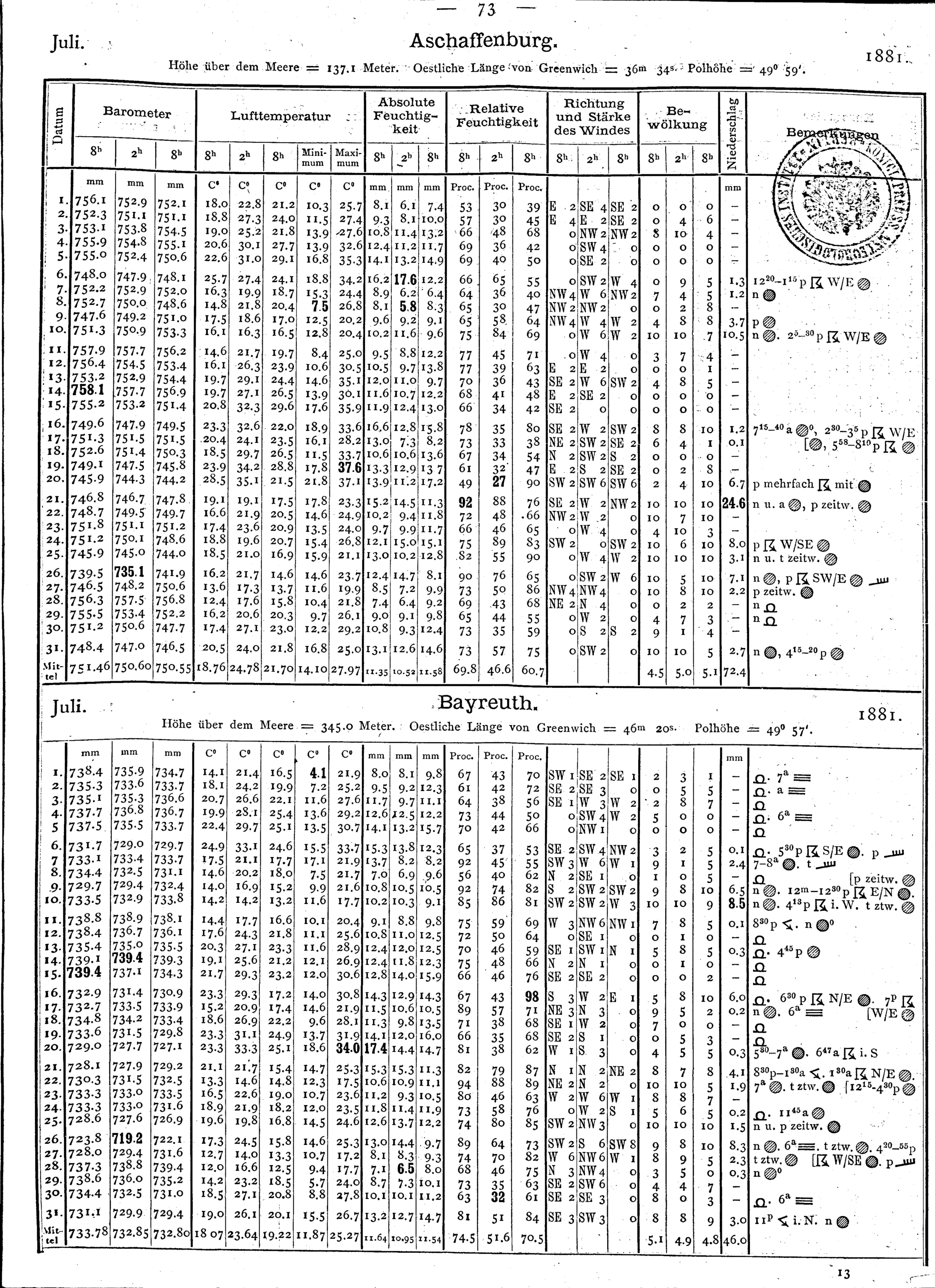Beobachtungen der meteorologischen Stationen im Königreich Bayern