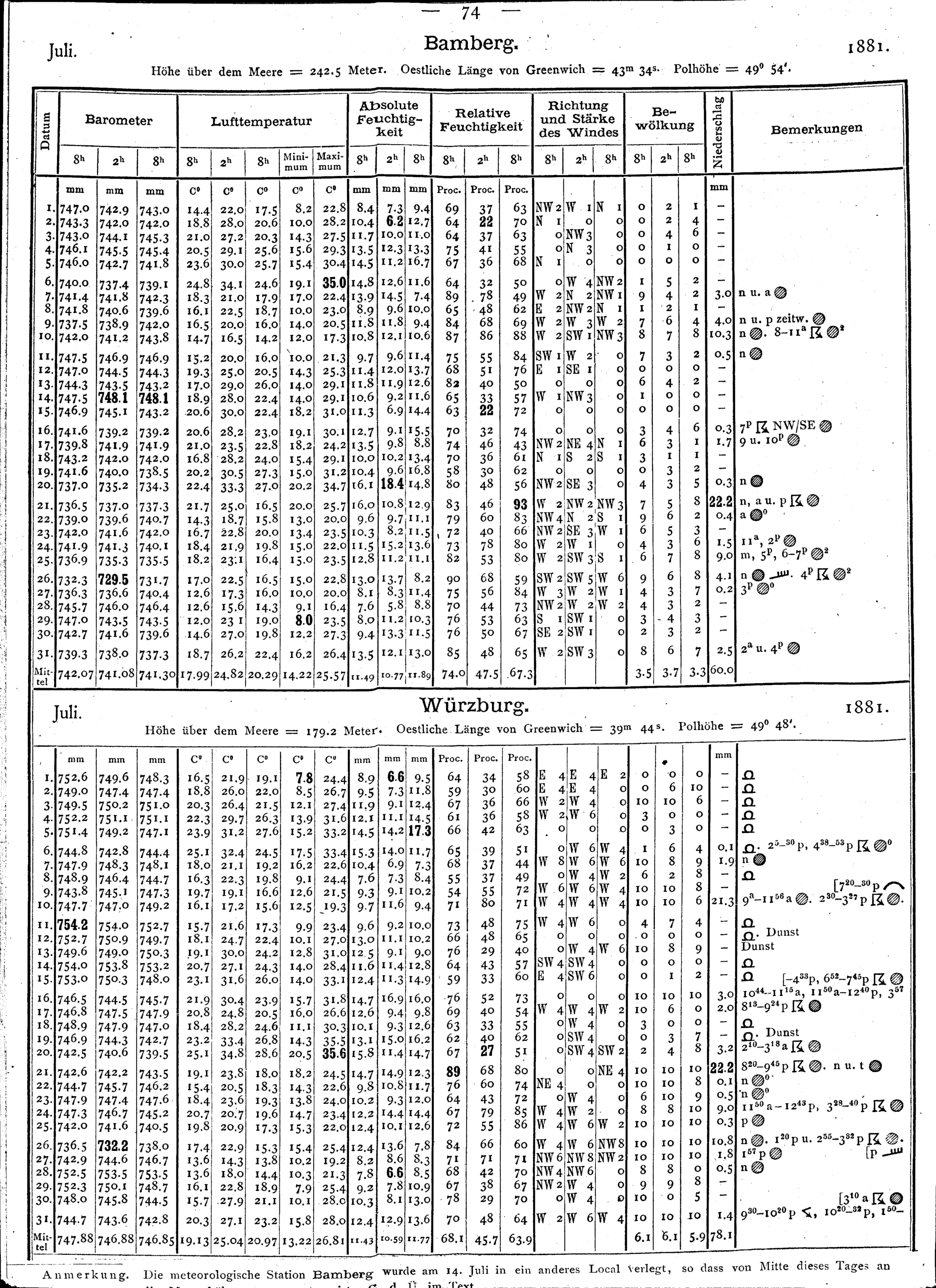 Beobachtungen der meteorologischen Stationen im Königreich Bayern