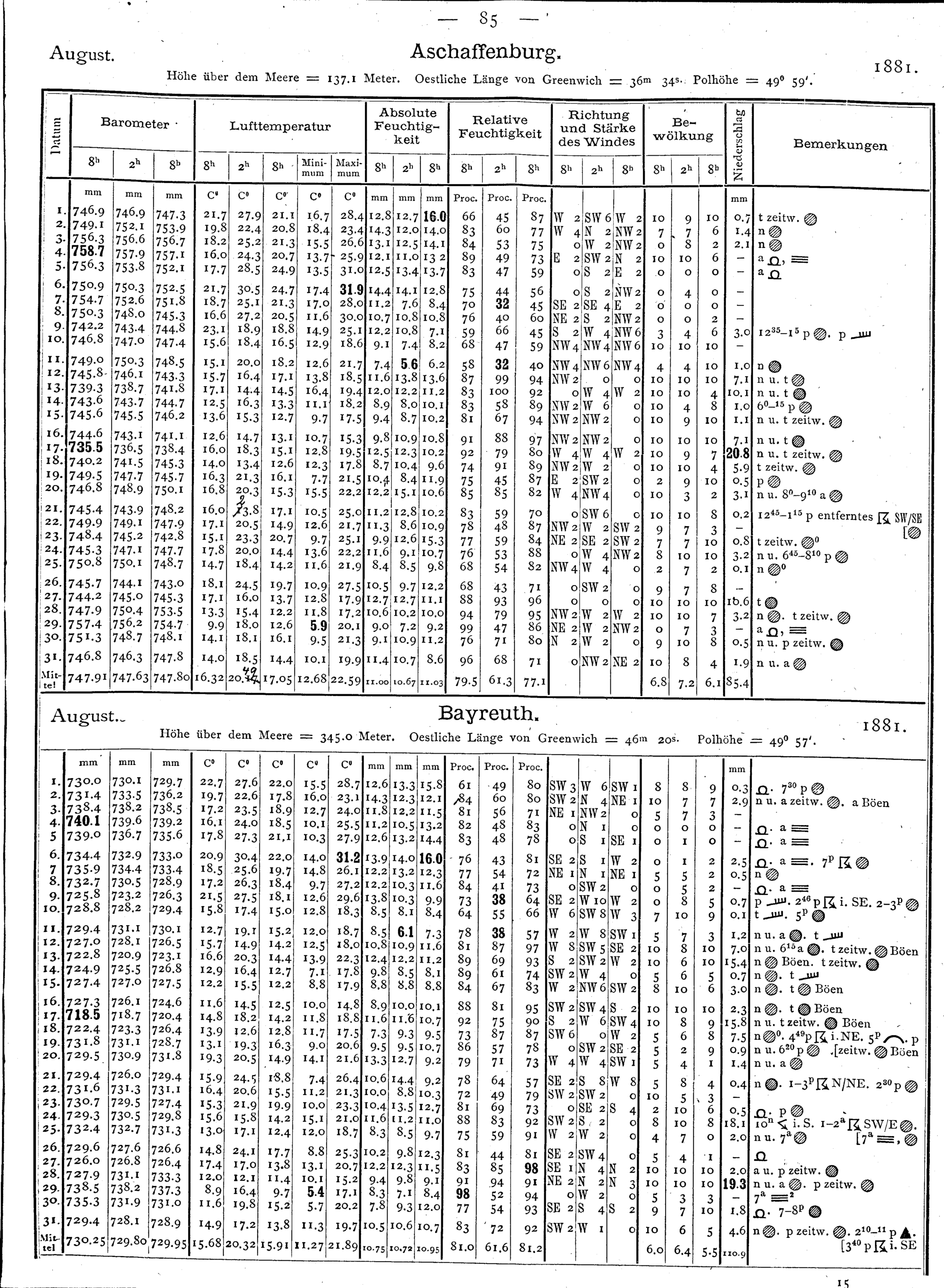 Beobachtungen der meteorologischen Stationen im Königreich Bayern