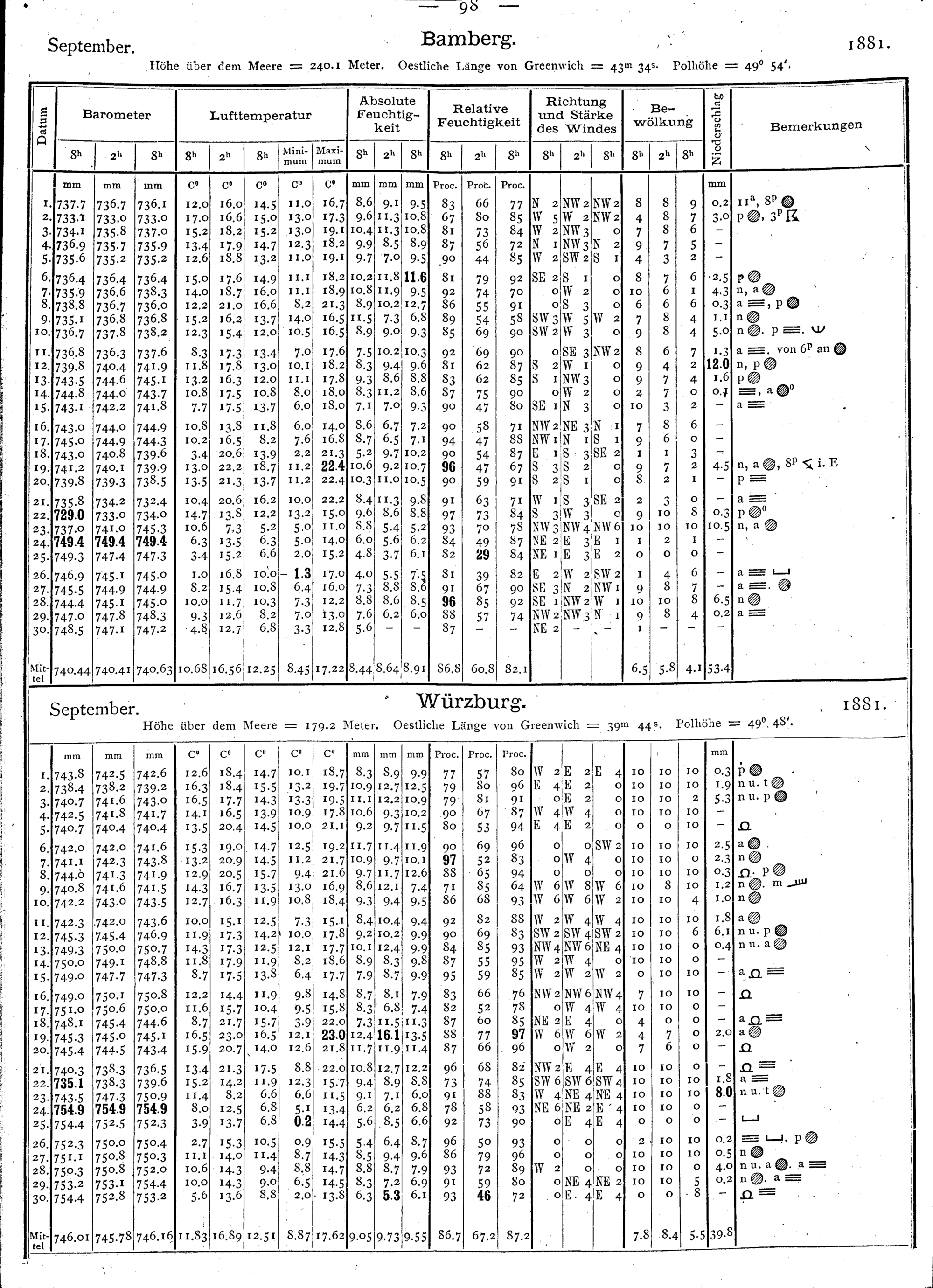 Beobachtungen der meteorologischen Stationen im Königreich Bayern