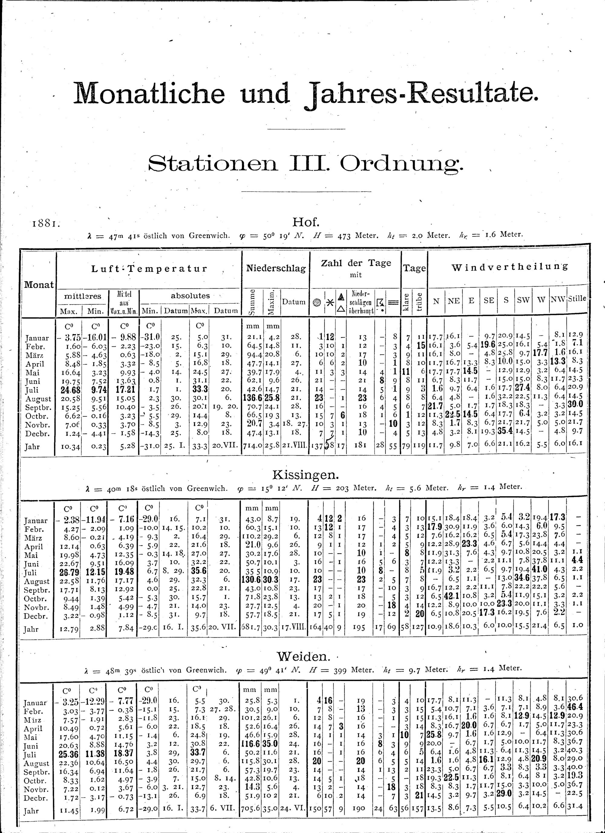 Beobachtungen der meteorologischen Stationen im Königreich Bayern