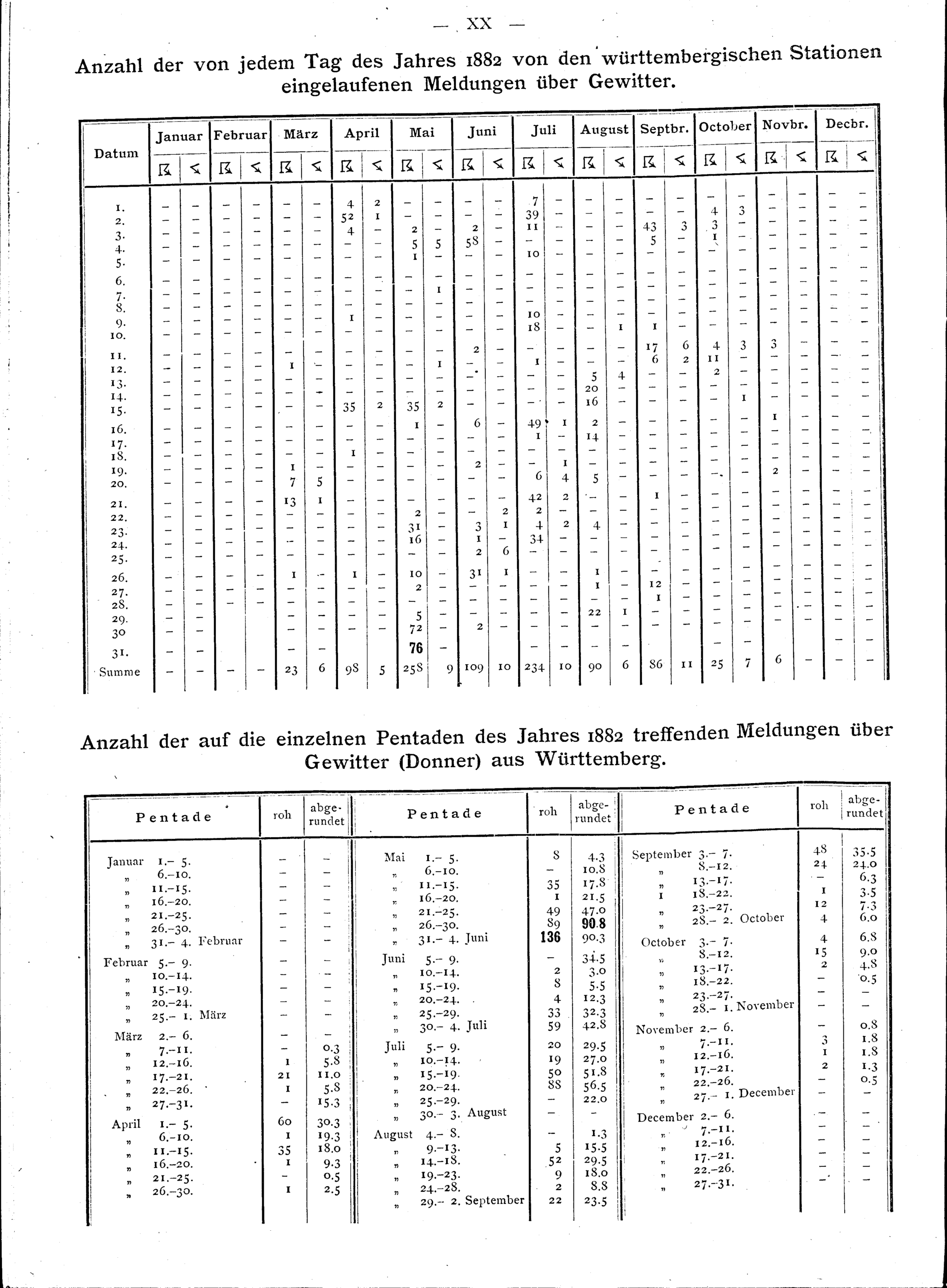 Beobachtungen über Gewitter in Bayern und Württemberg während des Jahres 1882