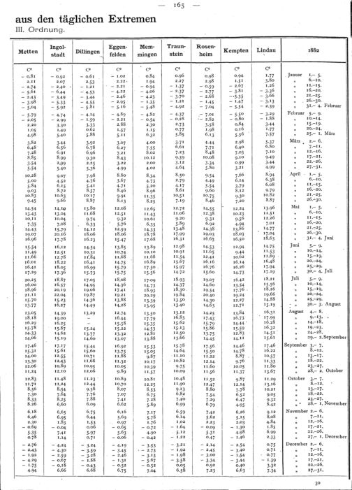 Fünftägige Temperaturmittel aus den täglichen Extremen an den Stationen III. Ord...