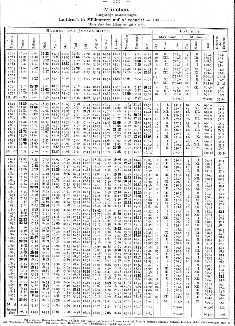 67jährige Beobachtungen zu München bearbeitet von Dr. C. Lang (Tabellen)