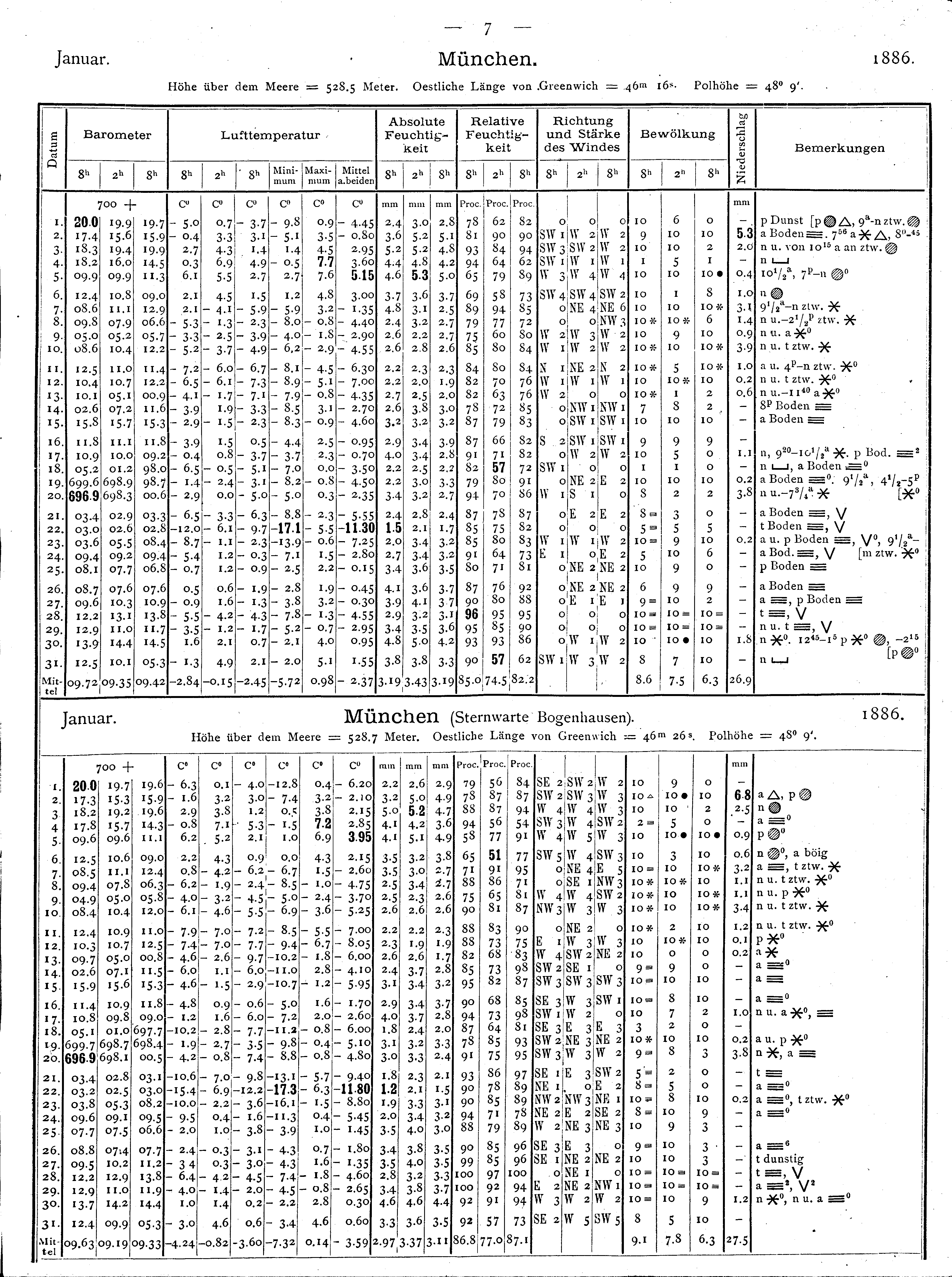 Tägliche Beobachtungen sämmtlicher Stationen darunter eingeschlossen: