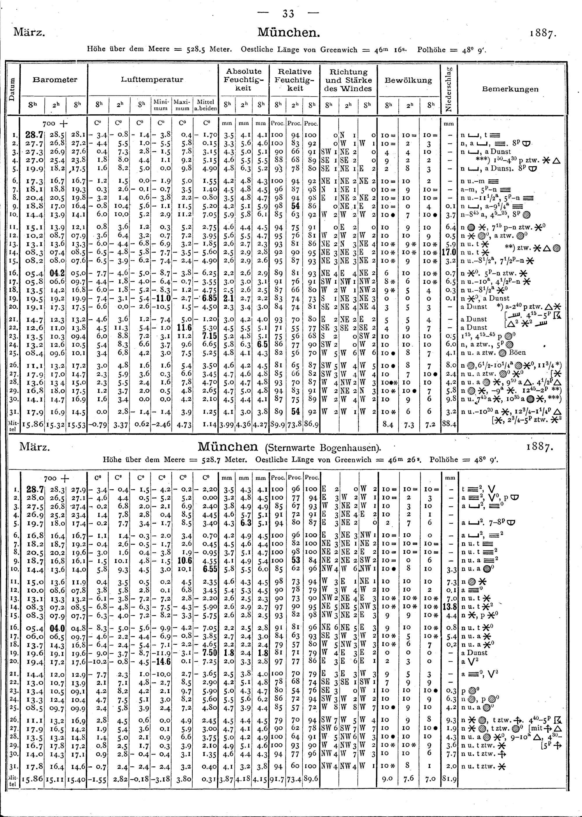 Tägliche Beobachtungen sämmlicher Stationen darunter eingeschlossen: