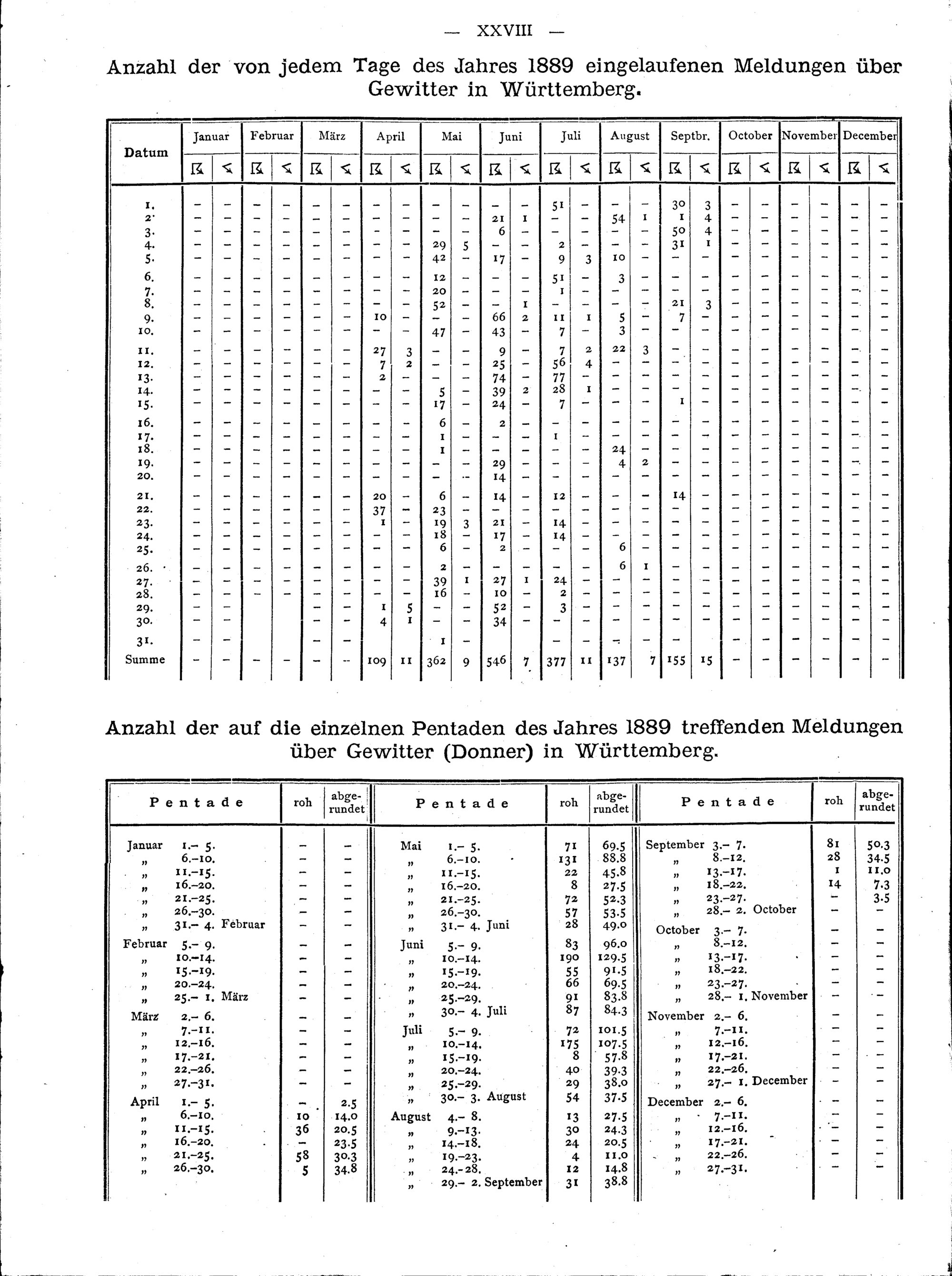 Beobachtungen über Gewitter in Bayern, Württemberg und Baden während des Jahres 1889...