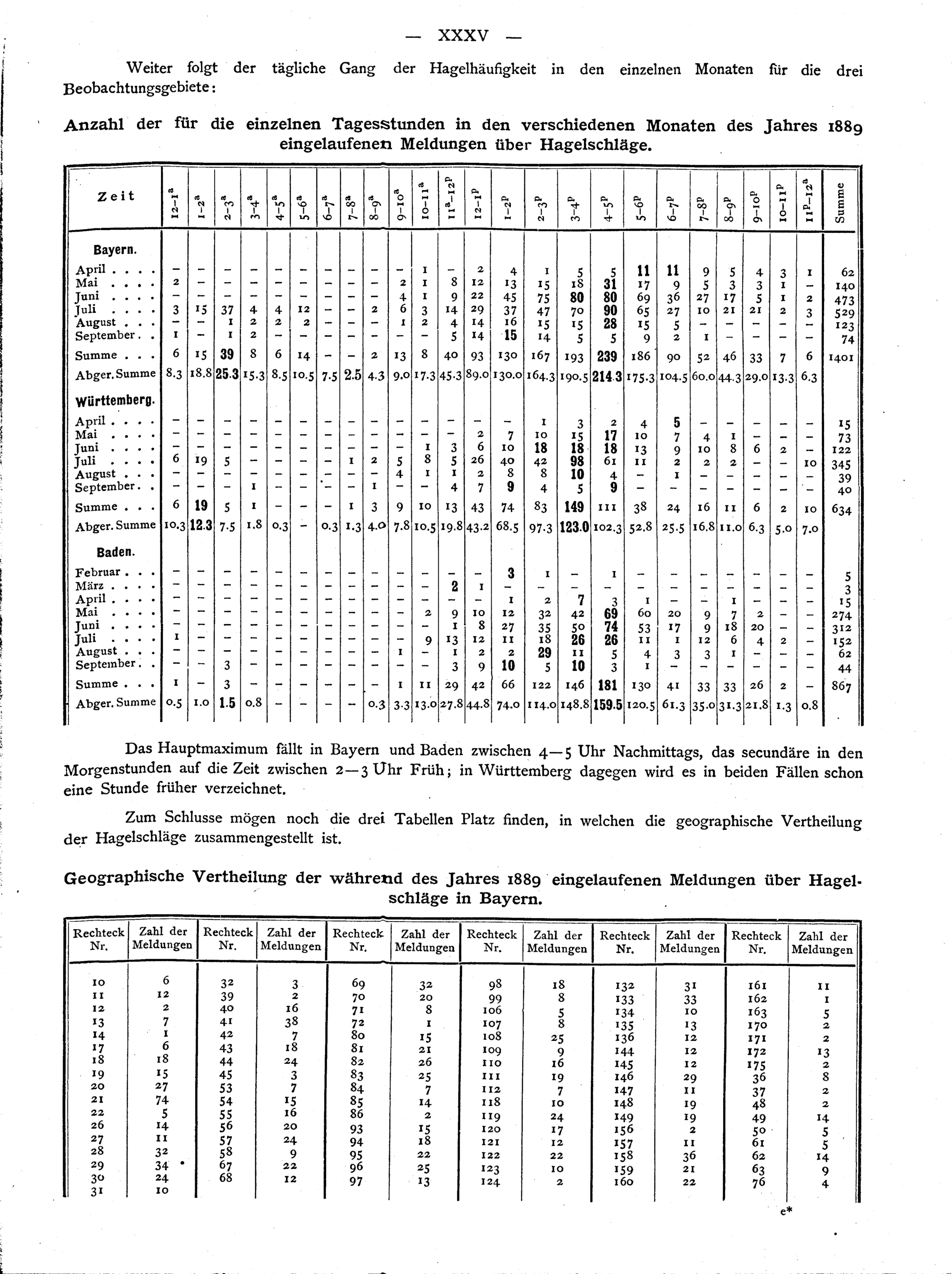 Beobachtungen über Gewitter in Bayern, Württemberg und Baden während des Jahres 1889...