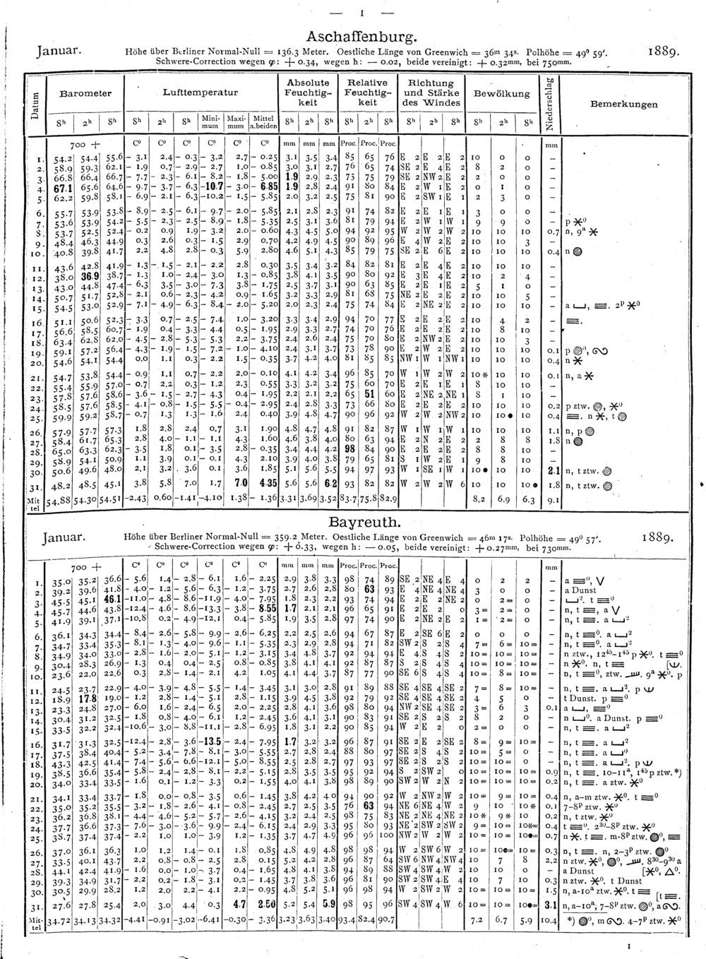 Tägliche Beobachtungen der Stationen II. Ordnung
