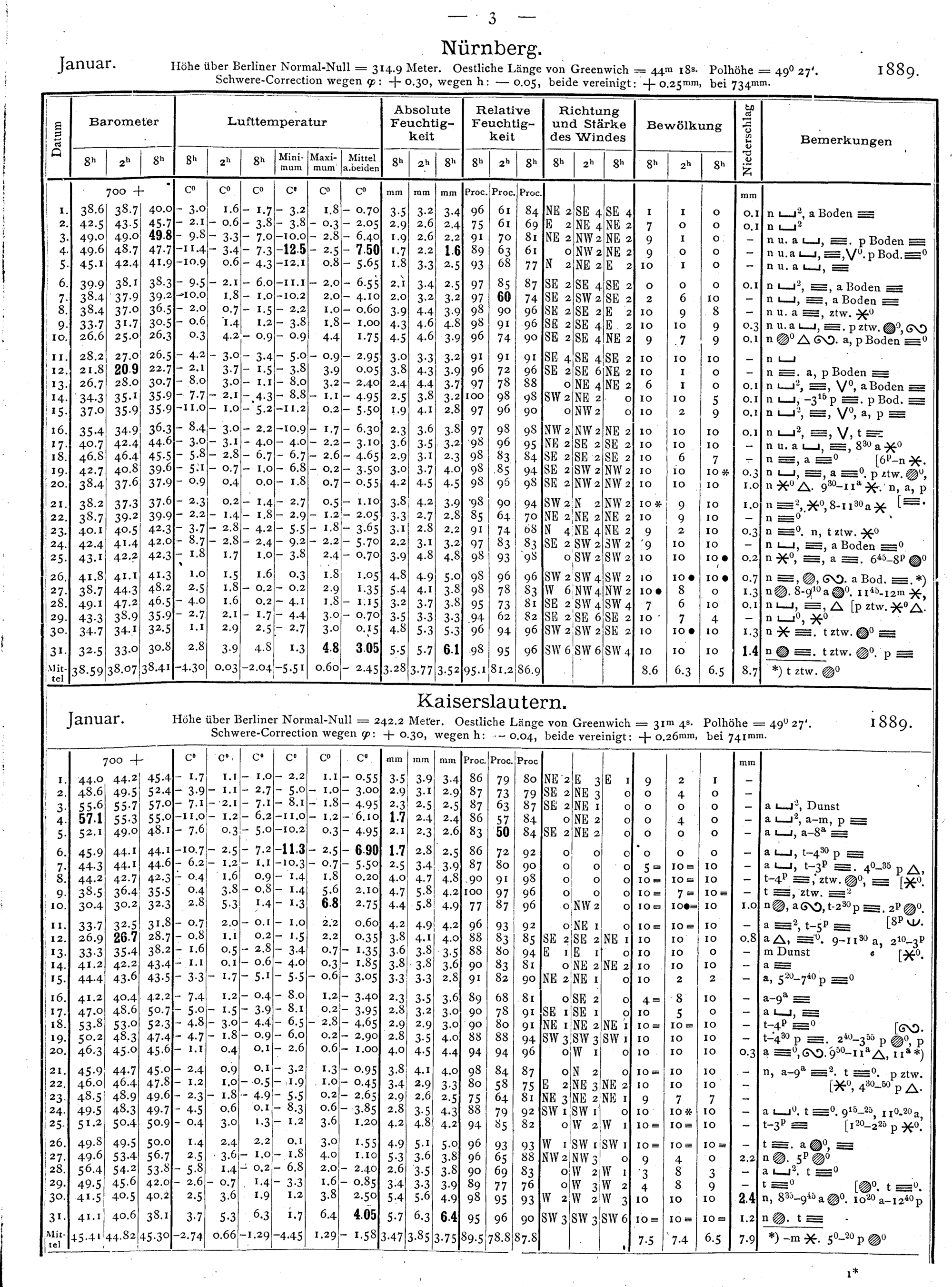 Tägliche Beobachtungen der Stationen II. Ordnung