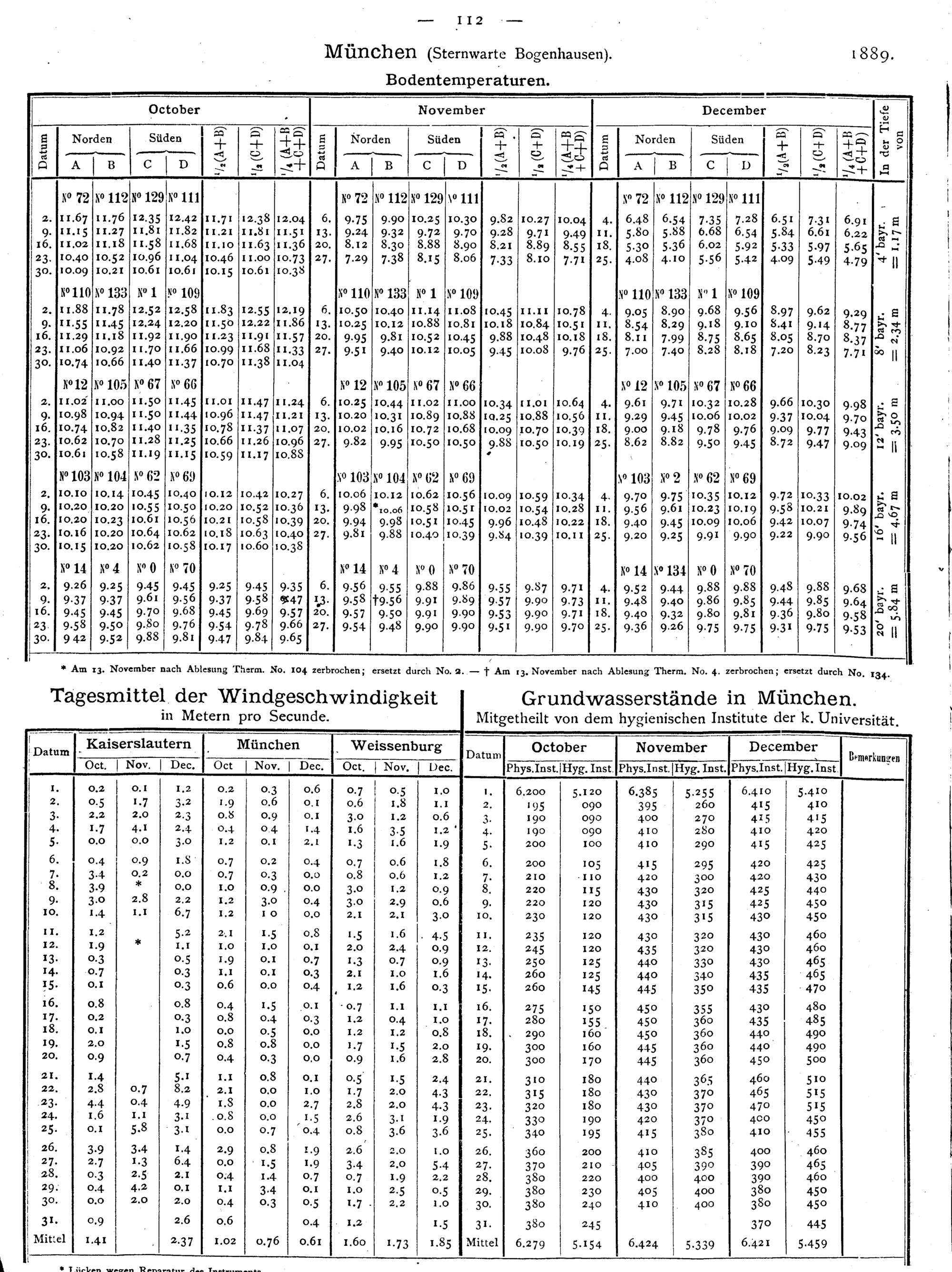 Tägliche Beobachtungen der Stationen II. Ordnung