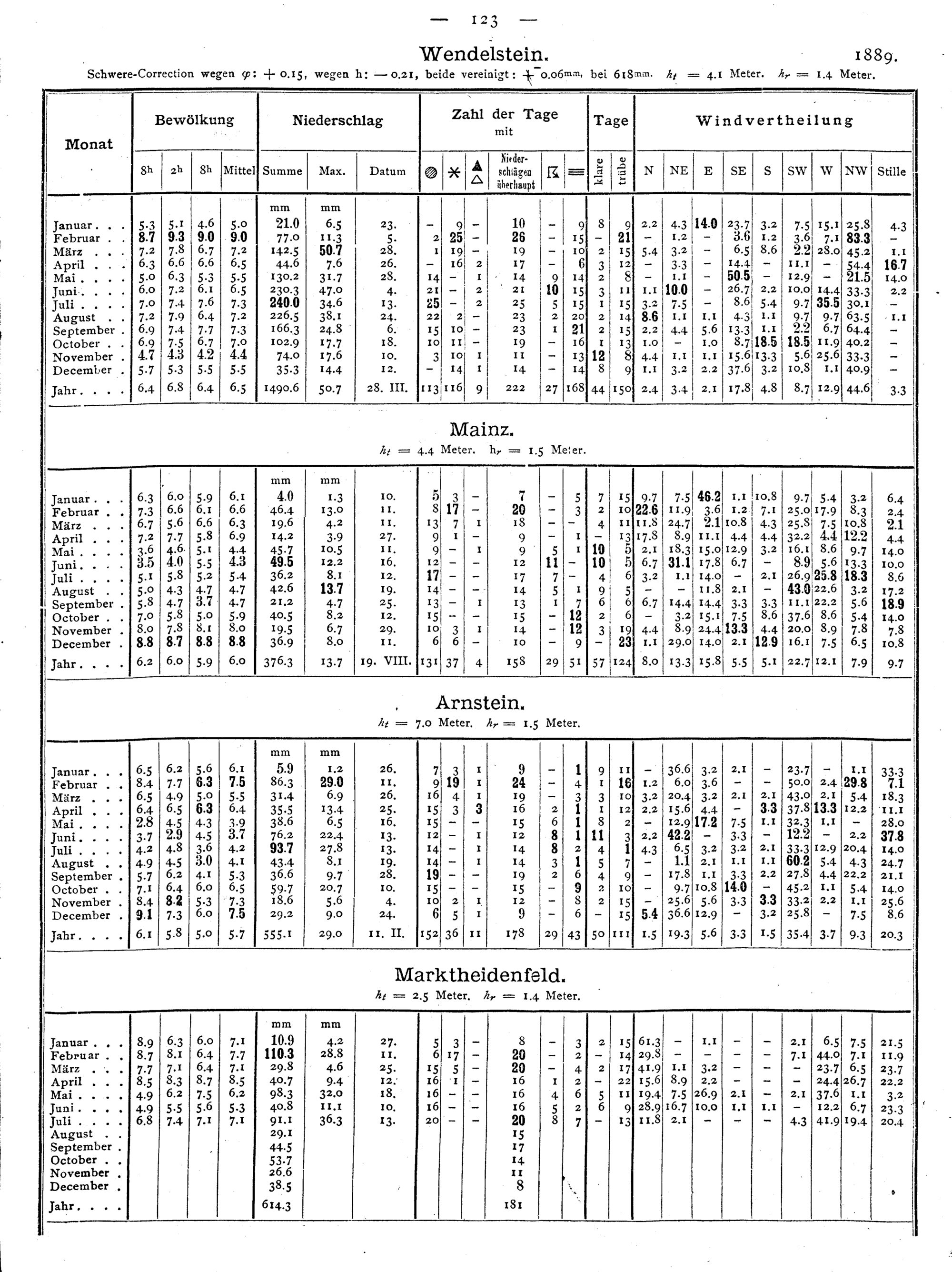 Monatliche und Jahres-Resultate
