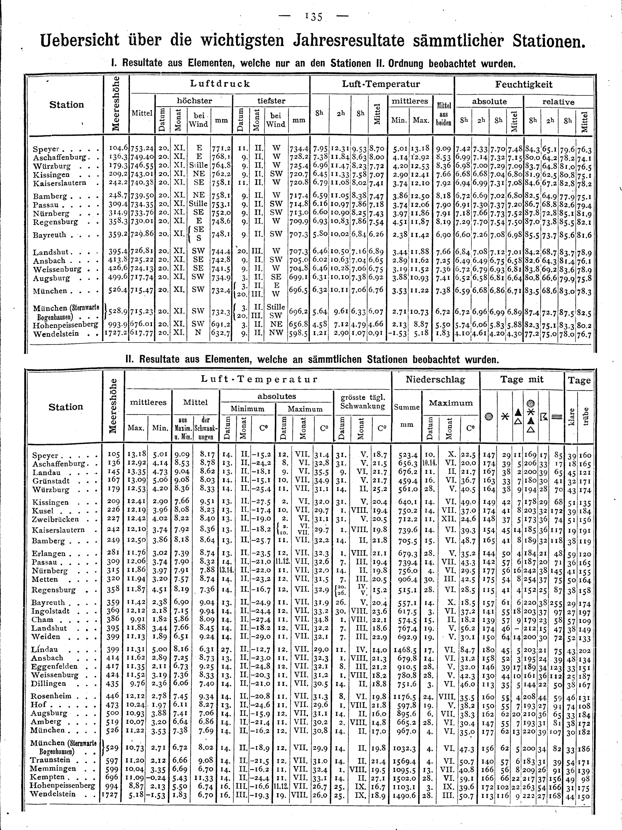 Uebersicht über die wichtigsten Jahresresultate sämmtlicher Stationen