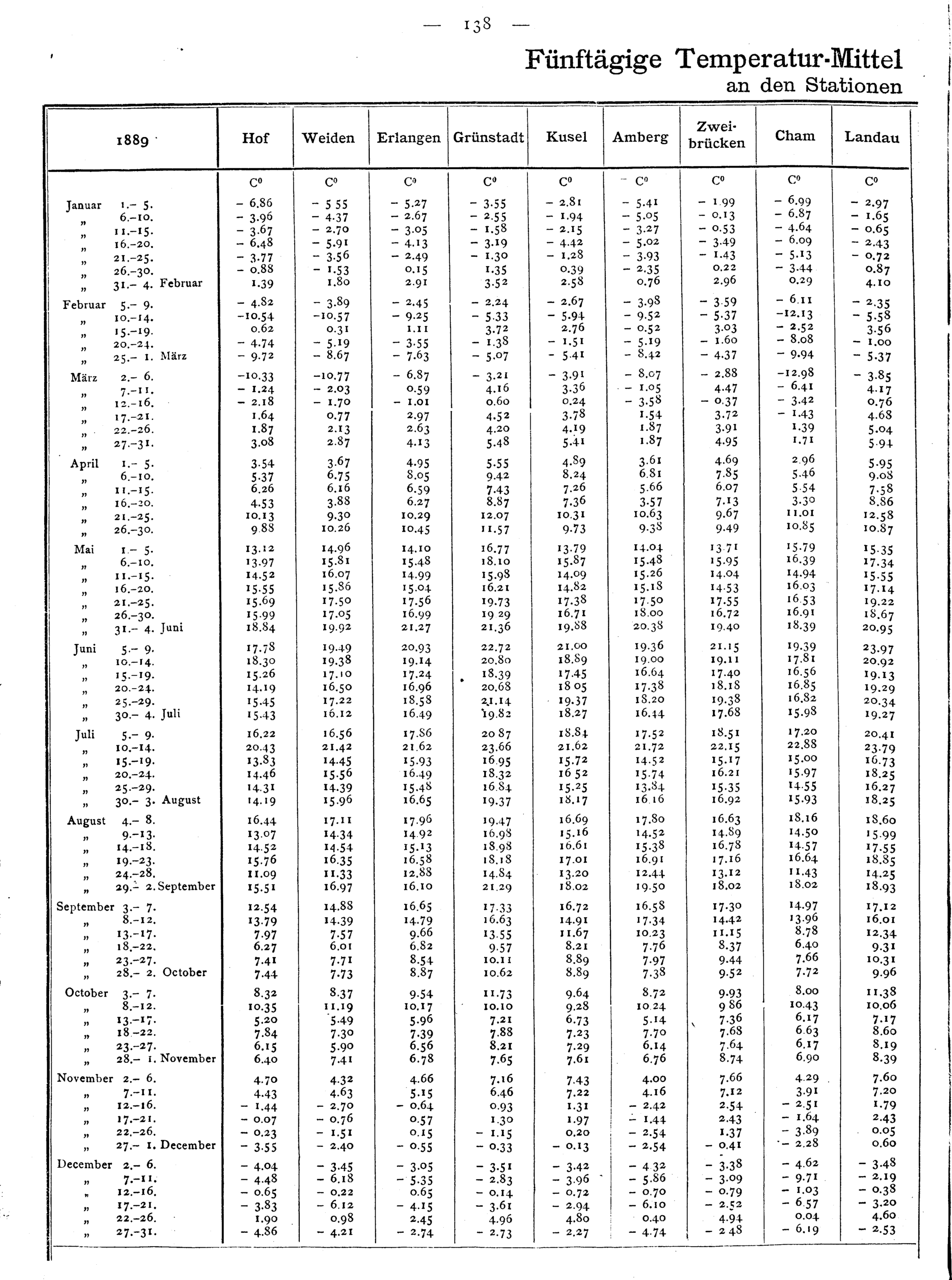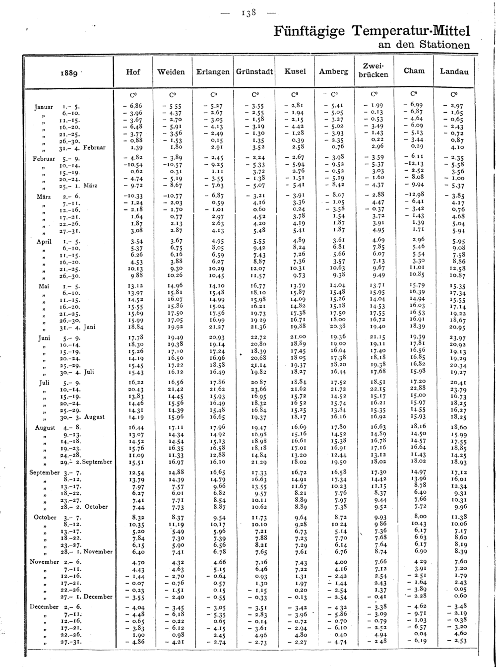 Fünftägige Temperatur-Mittel an den Stationen