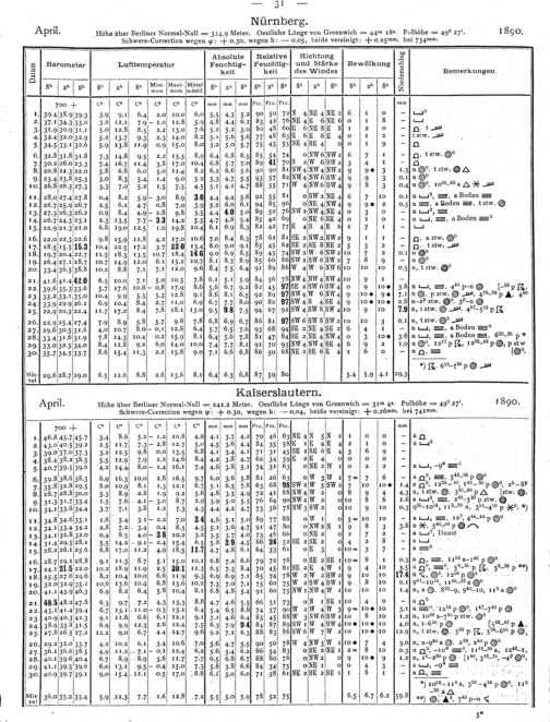 Tägliche Beobachtungen der Stationen II. Ordnung