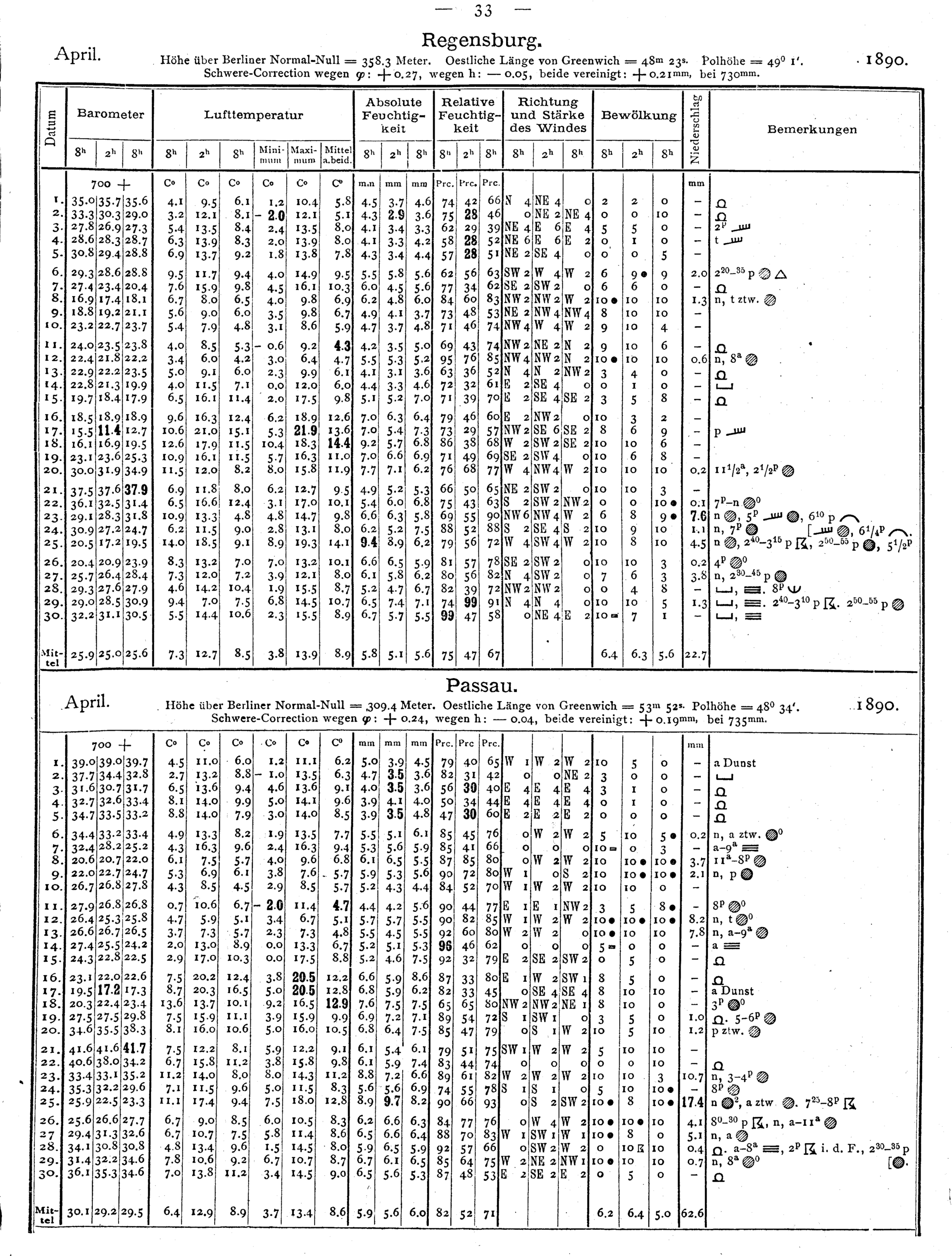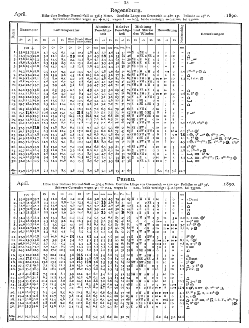 Tägliche Beobachtungen der Stationen II. Ordnung