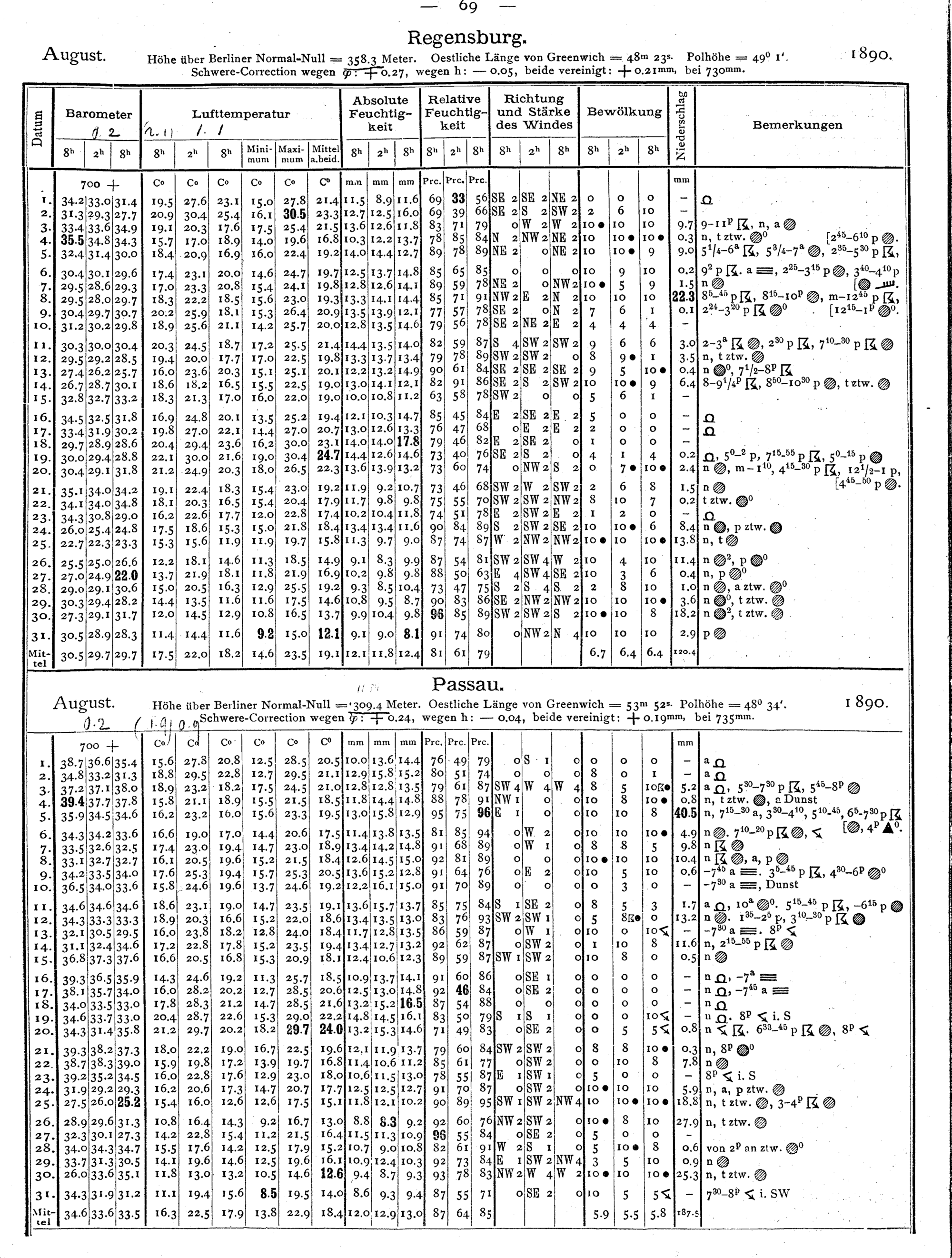 Tägliche Beobachtungen der Stationen II. Ordnung