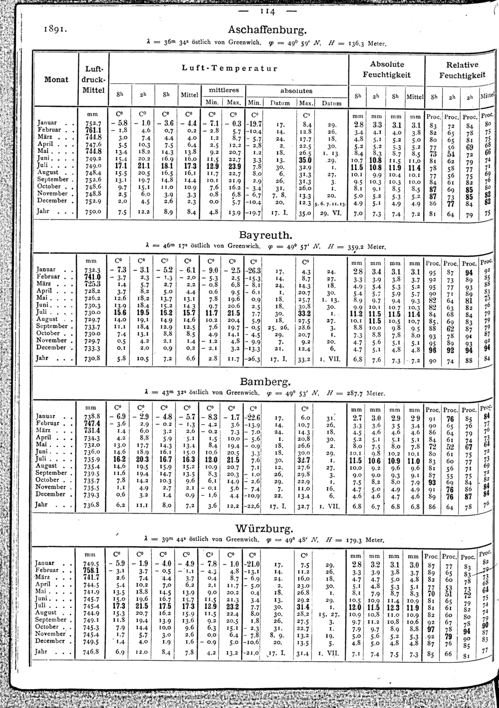 Beobachtungen der meteorologischen Stationen im Königreich Bayern