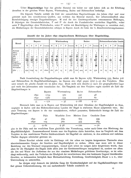 Beobachtungen über Gewitter in Bayern, Württemberg, Baden und Hohenzollern während...