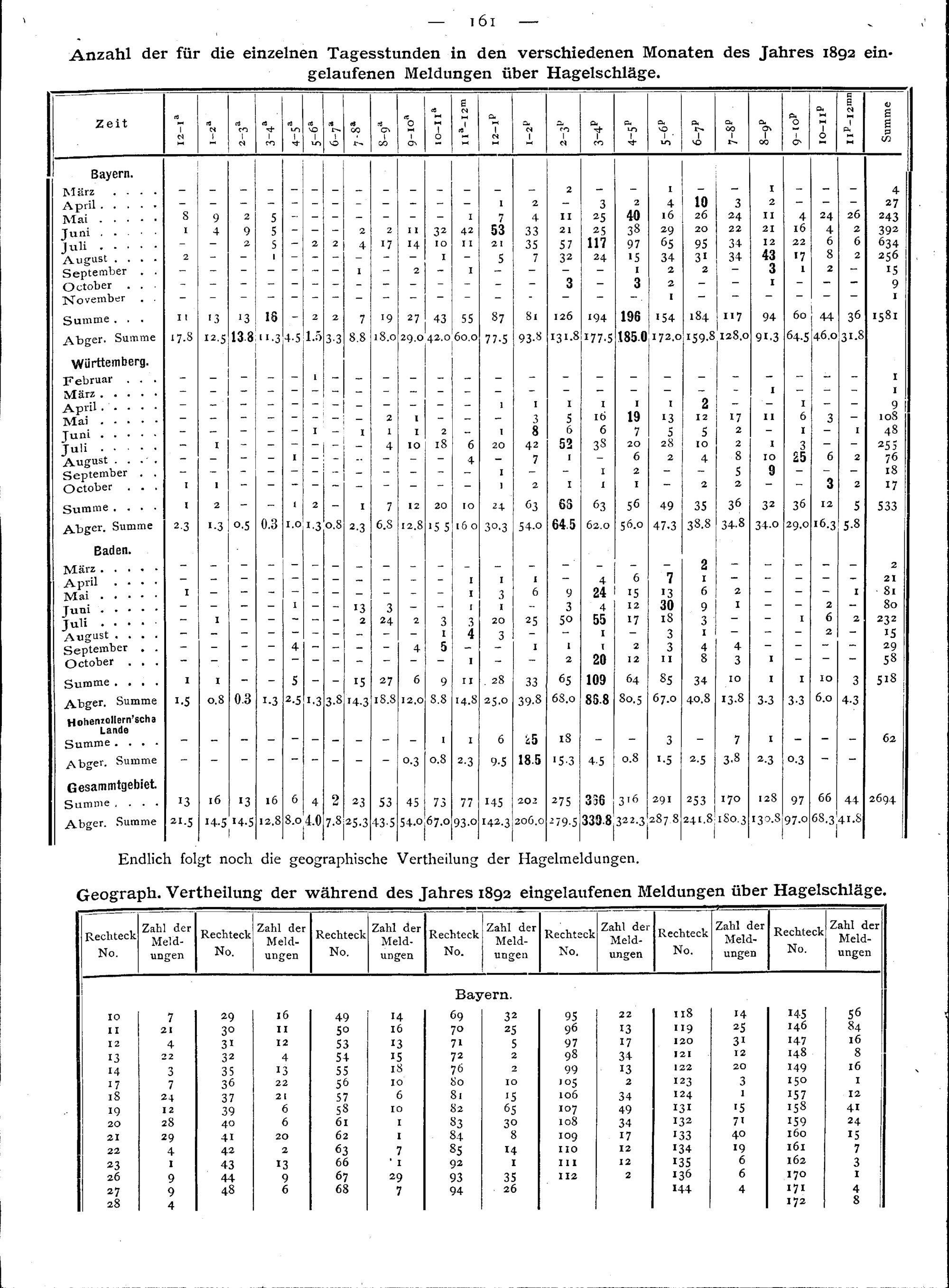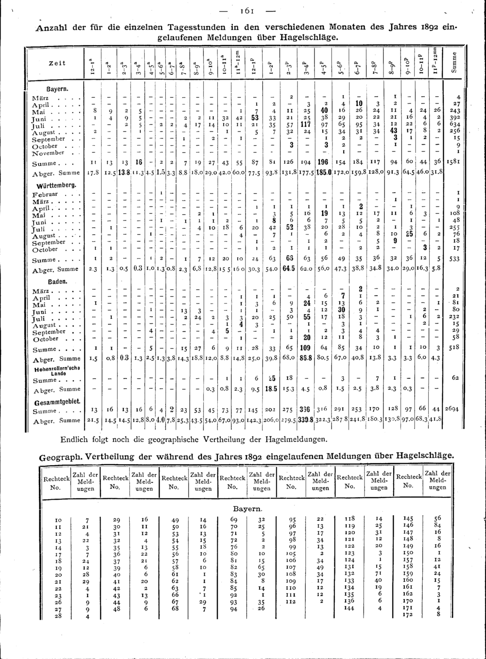 Beobachtungen über Gewitter in Bayern, Württemberg, Baden und Hohenzollern während...