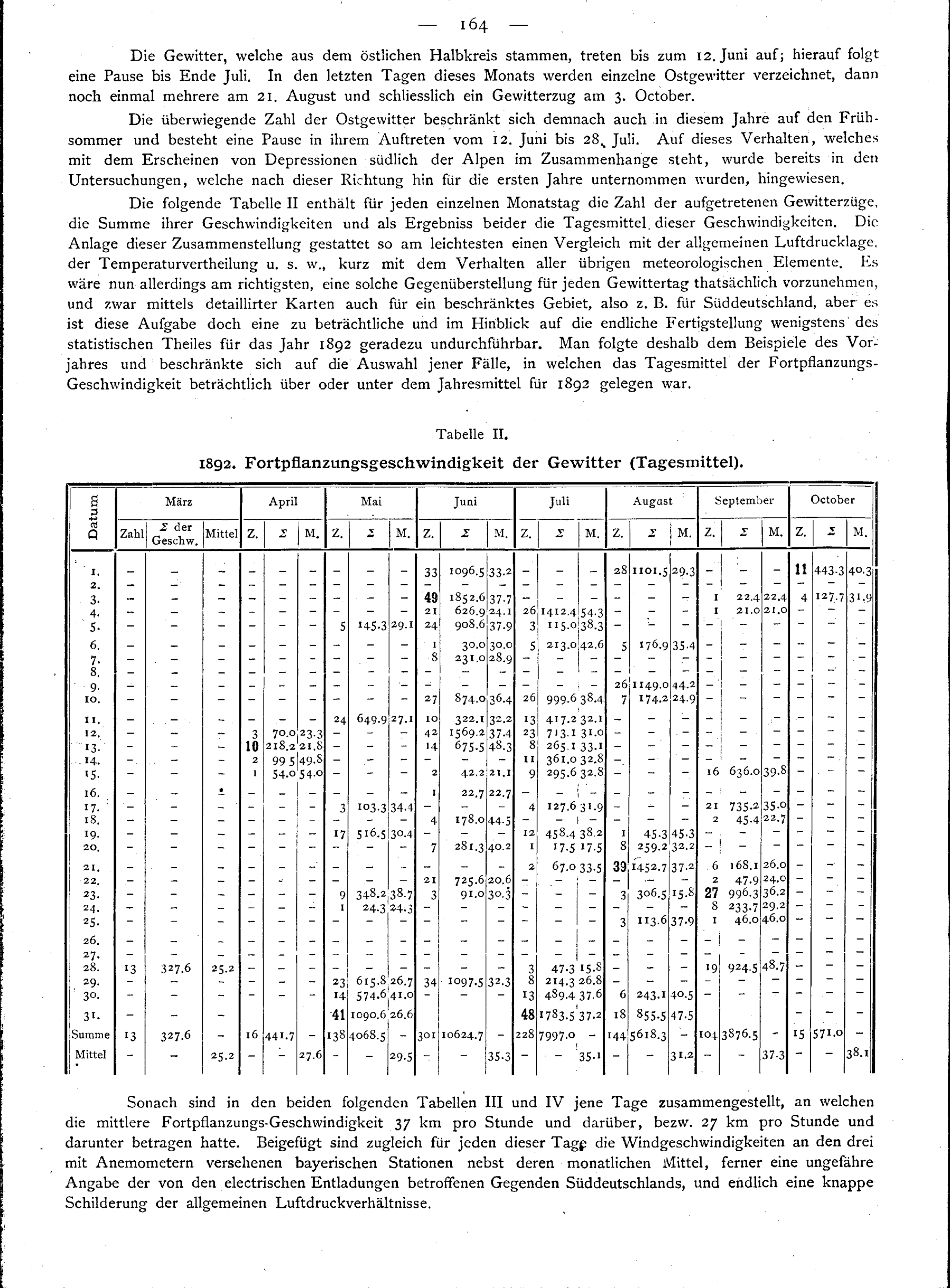 Die Fortpflanzungsgeschwinidigkeit der Gewitter in Süddeutschland während des Jahres...