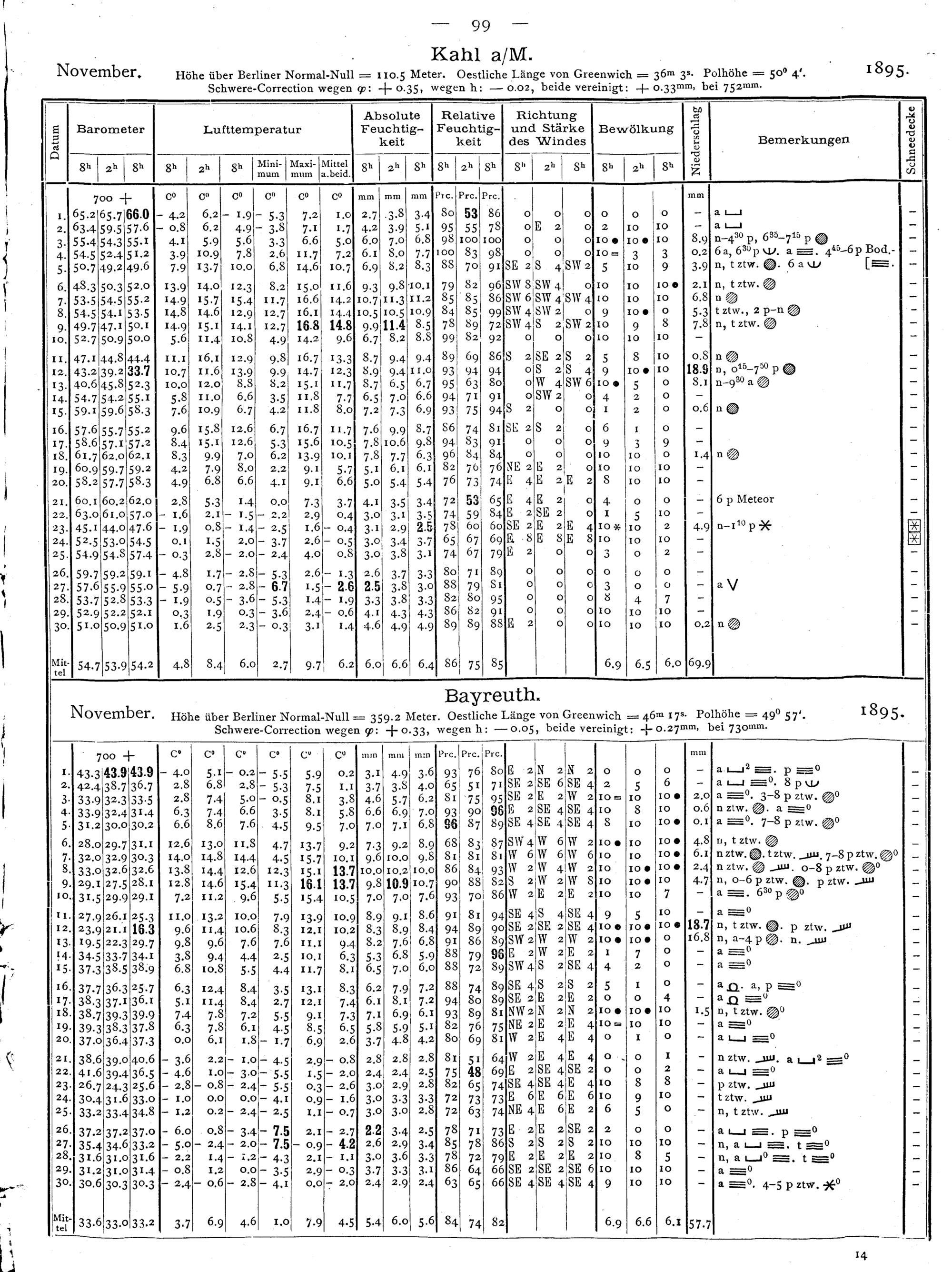 Tägliche Beobachtungen der Stationen II. Ordnung